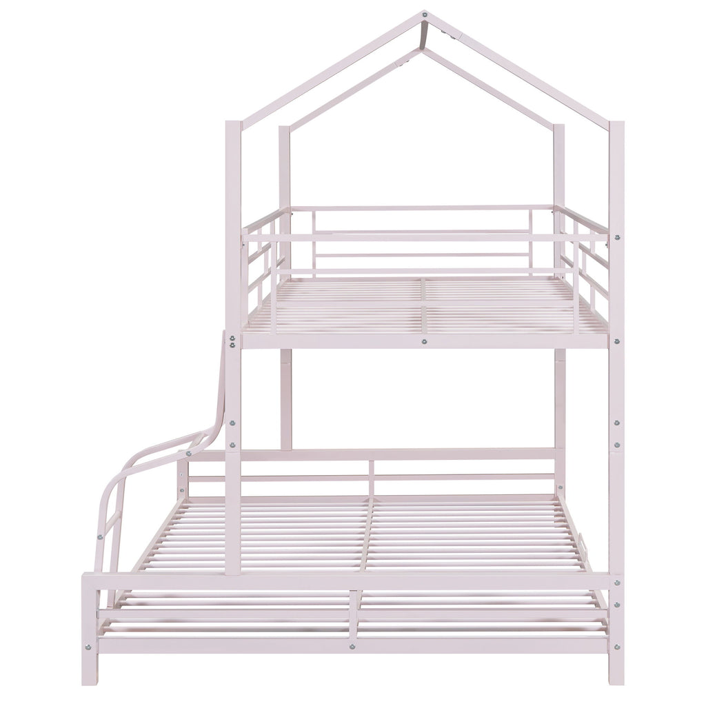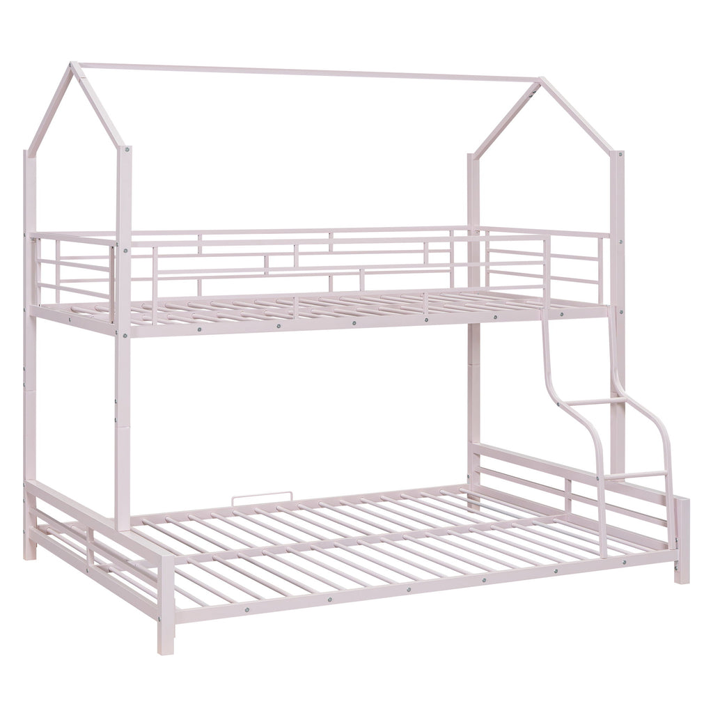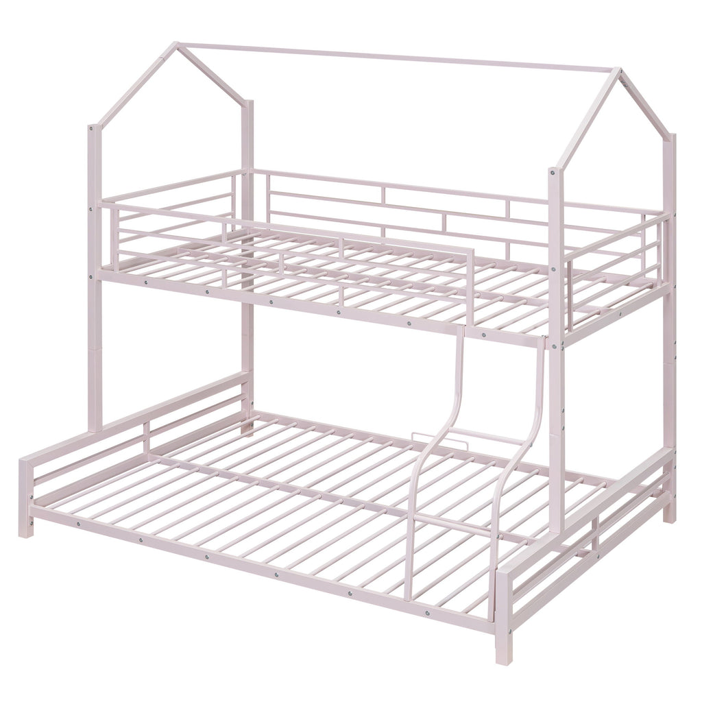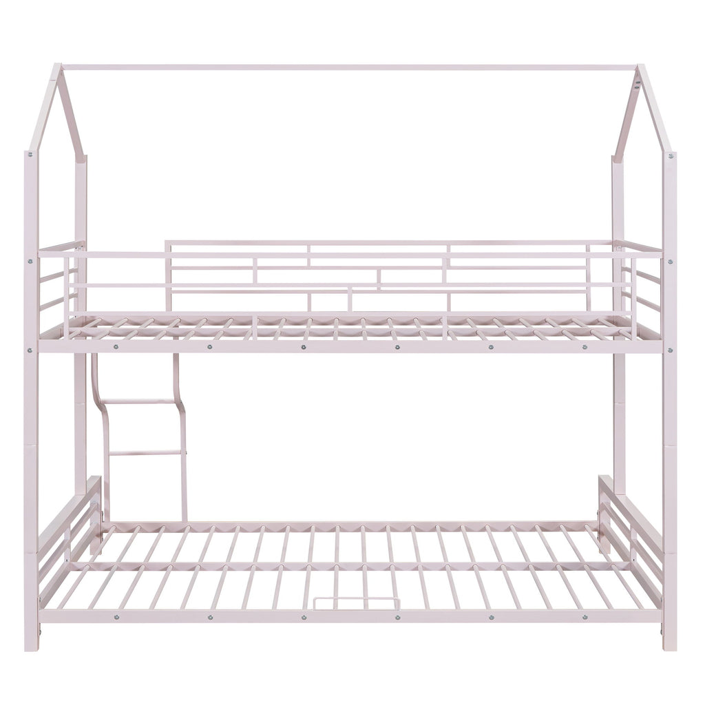 Twin Over Full Sturdy Frame Contemporary Metal House Bunk Bed - Pink