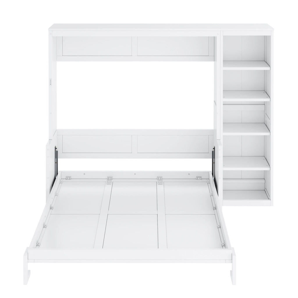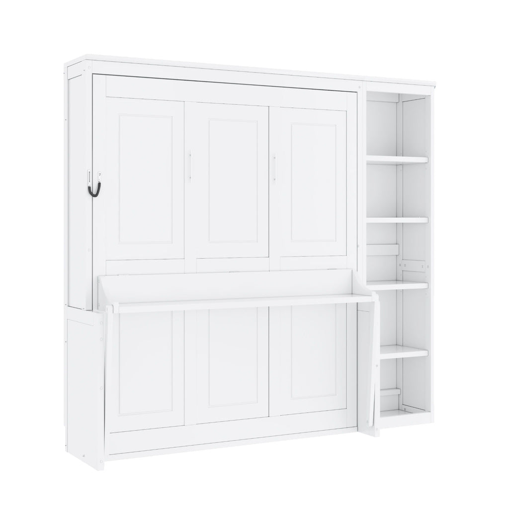 Queen Size Murphy Bed With Desk And Bookshelf - White