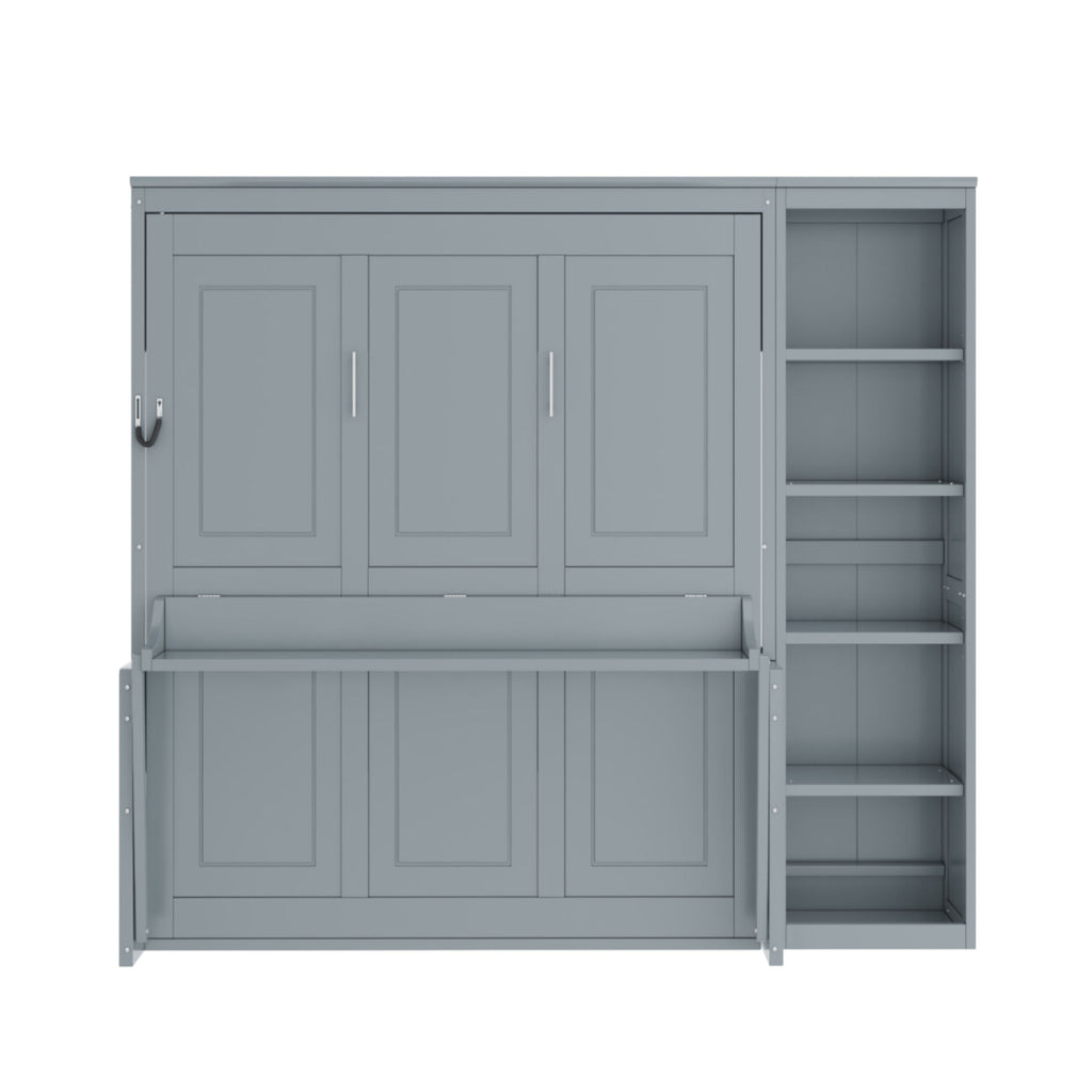 Queen Size Murphy Bed With Desk And Bookshelf - Gray