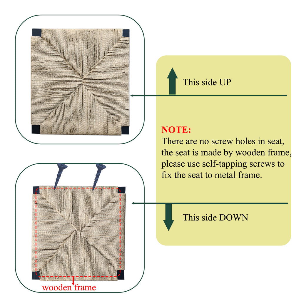 - Sturdy & Long-Lasting: Featuring a durable black metal frame and a woven paper rope seat, these stools ensure stability and longevity.