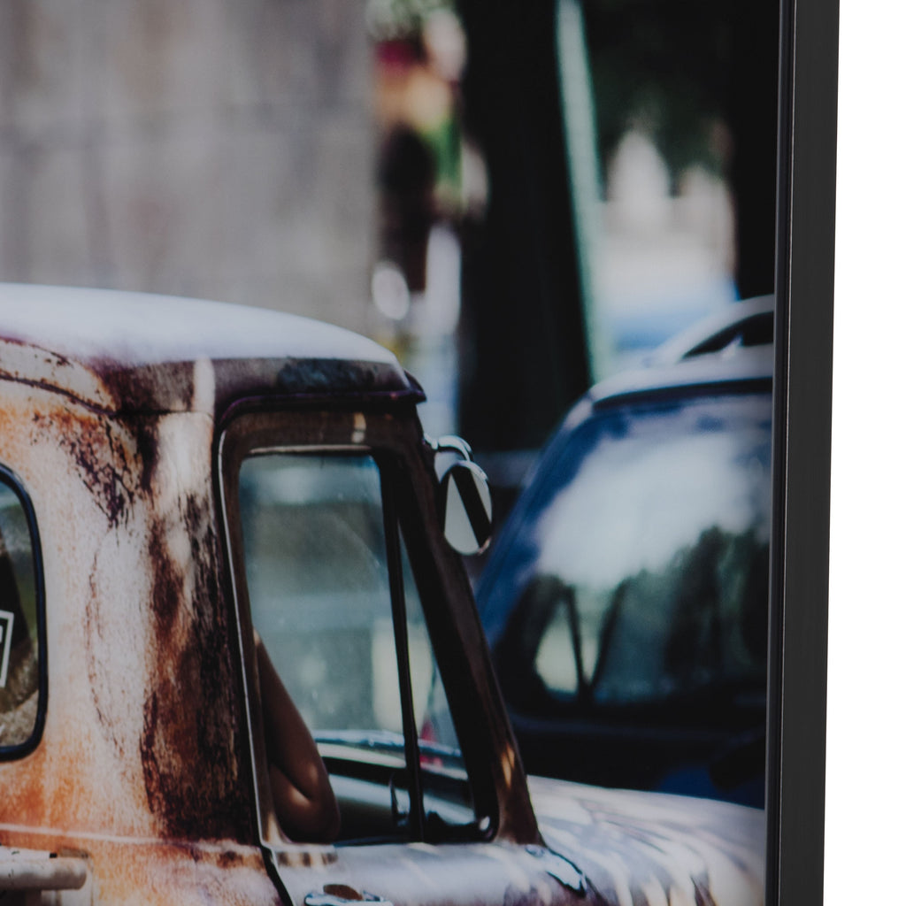 Introducing our Surf's Up tempered glass print, featuring an iconic old ford truck on the street with a faded background. This print captures the vintage charm of a bygone era in a way that truly stands out. The old ford truck is the centerpiece of the print, and its rugged and classic design is sure to be a conversation starter in any room. The surfboard in the truck bed adds a touch of coastal charm, making this print the perfect addition to any beach-inspired decor. The faded background creates a sense of nostalgia and adds a touch of authenticity to the piece, making it feel like a treasured vintage photograph. The tempered glass adds depth and texture to the print, making it a unique and captivating piece that is sure to be a cherished addition to any home. The sleek black frame adds a touch of sophistication and modernity to the piece, making it the perfect addition to any contemporary or coastal decor.