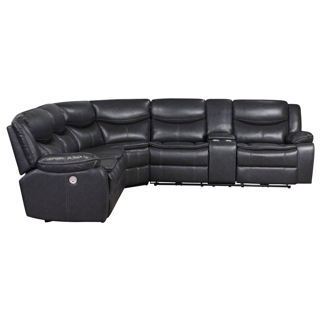Bring modern comfort and convenience into your living space with this power reclining sectional. Designed with a rounded silhouette and rich leatherette upholstery, it offers both style and durability. Plush foam filling with tufted and channeled detailing creates inviting comfort, while pocket coil seating with sinuous spring construction ensures lasting support. Smooth power recline functionality allows customized lounging, complemented by a wall-hugger design that saves space. A flip-top console with cup holders adds practical storage for everyday use.