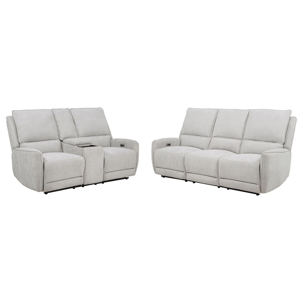 Designed for those who seek comfort without compromise, this power reclining sofa set transforms any space into a soothing sanctuary. Draped in dove grey chenille, each piece features sculpted seating, generously padded cushions, and smooth power-operated recline at the touch of a button. Built-in anti-pinch safety mechanisms pause movement upon contact, offering both luxury and protection. It's a collection that brings ease, elegance, and confidence to every seat.