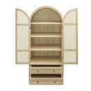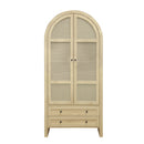 Tall Arched Kitchen Pantry, Arched Storage Display Cabinet With 2 Drawers & Adjustable Shelves, Rattan Door Versatile Storage Cabinet For Kitchen, Dining Room, Living Room - Natural