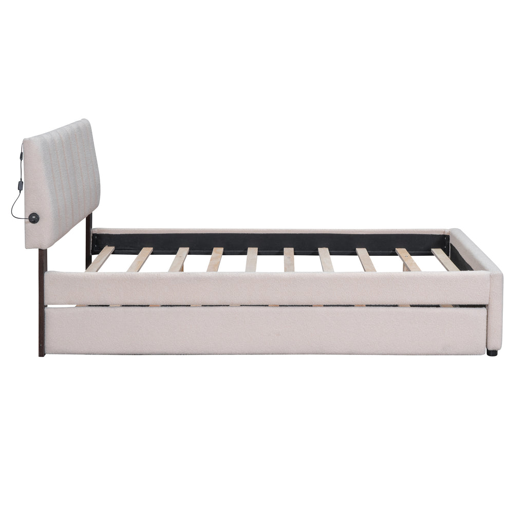 - [Extra Sleeping Space] This Upholstered bed with trundle under bed is perfect for ones who love sleepovers. Such a versatile piece, bringing functionality, versatility, and style to your home, perfect space saving functionality.