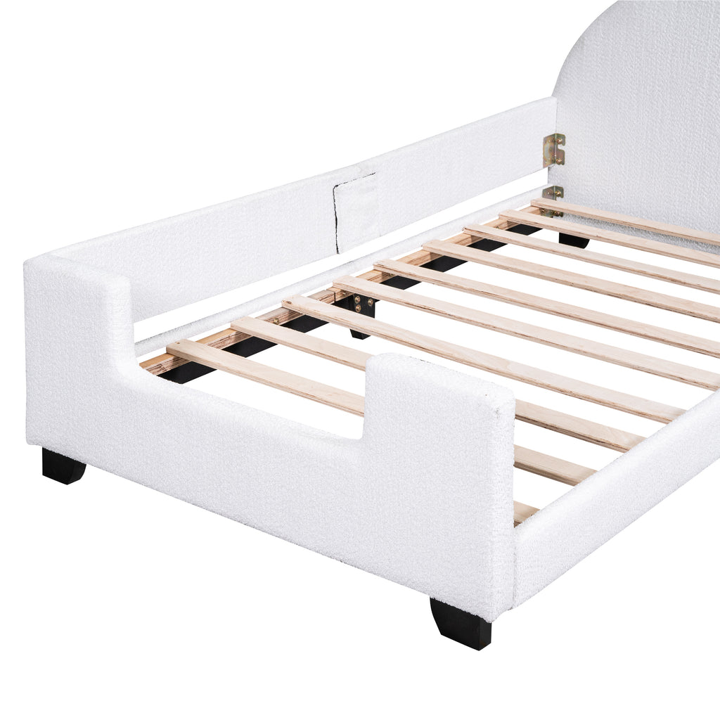 Teddy Fleece Twin Size Upholstered Daybed with Carton Ears Shaped Headboard, White