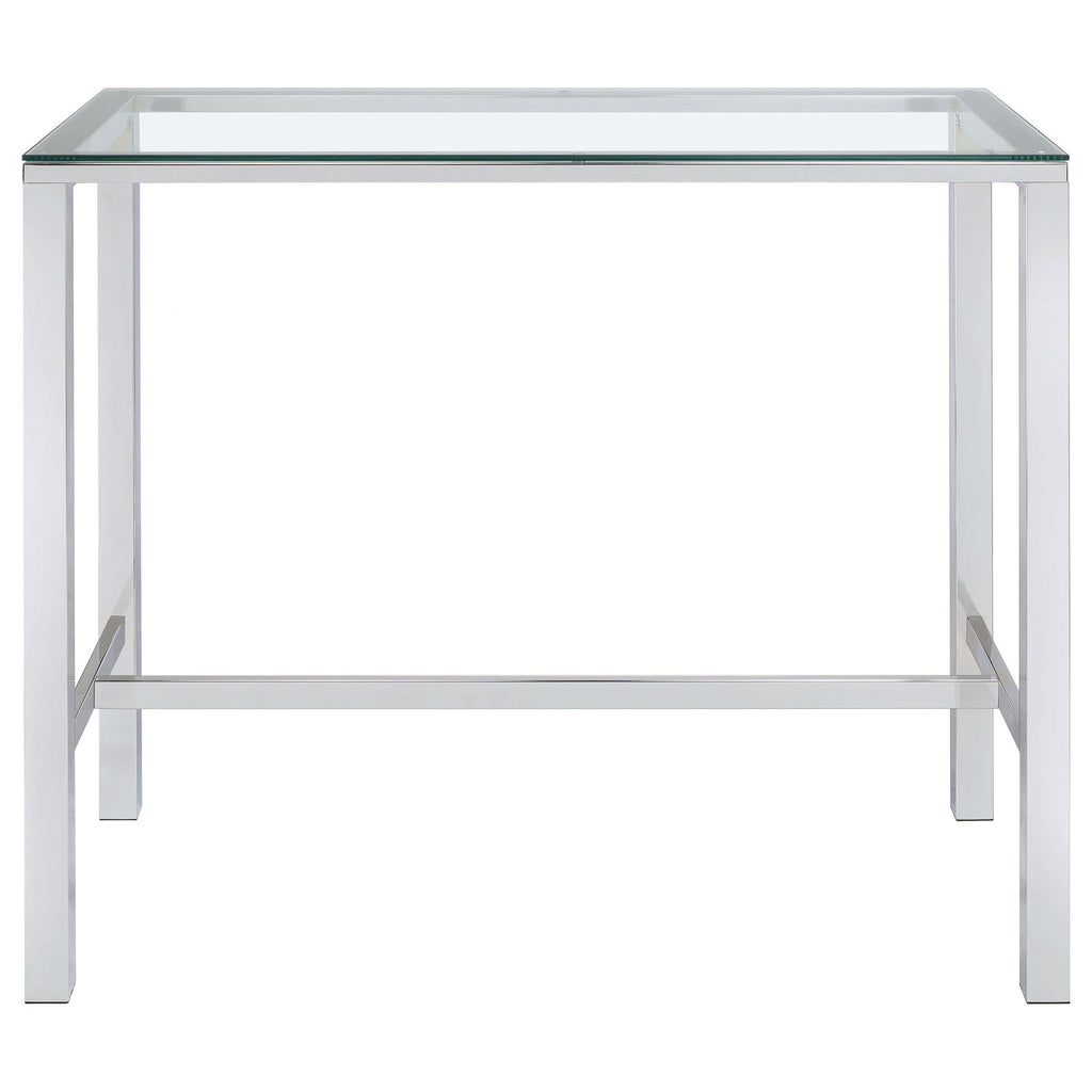 Add a flash of panache to your rec room or home bar with this modern bar table. Contemporarily designed with chrome legs and glass top. Crisp, clean lines cut an incisive silhouette. A martini with an olive or a classic old fashioned both deserve a bar table like this. Calculate your next investment or discuss your impending joint venture in style.