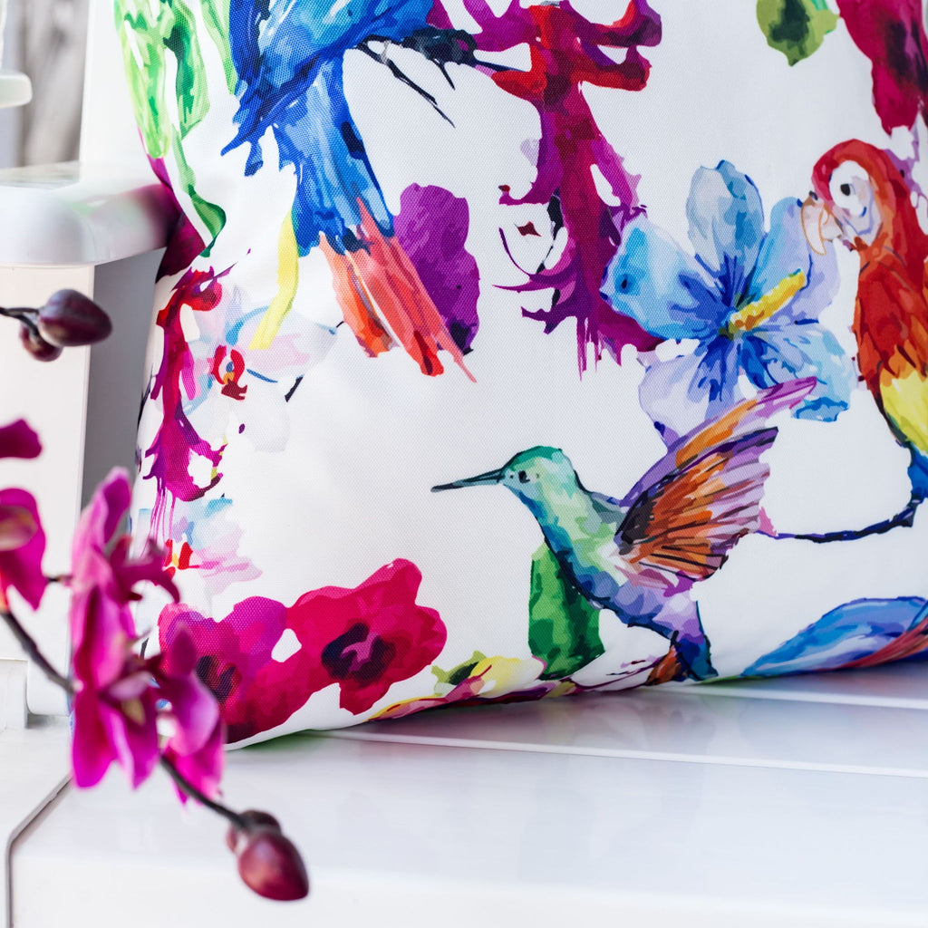Tropical Parrot Outdoor & Indoor Pillow With Solarium - Multicolor