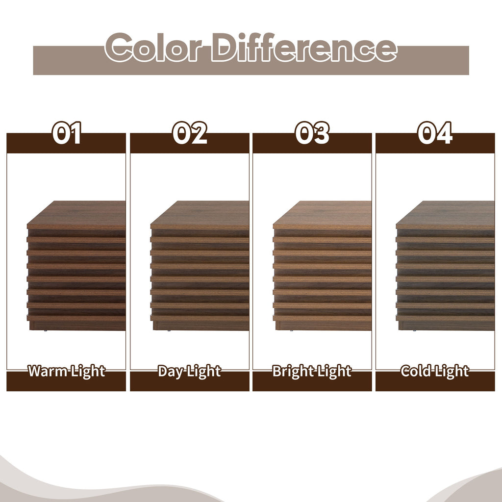 - Elegant Modern Form: Sleek walnut-finish MDF design with wave-pattern flip-up doors enhances visual appeal and blends seamlessly into contemporary interiors.