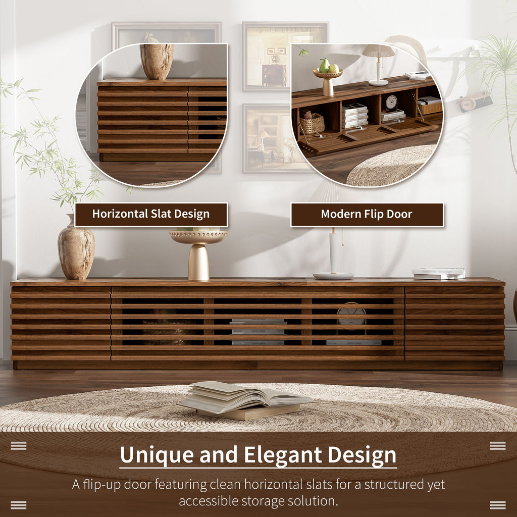 - Organized Entertainment Hub: Horizontal slatted doors hide spacious compartments, keeping accessories out of sight while maintaining a clutter-free, streamlined appearance.