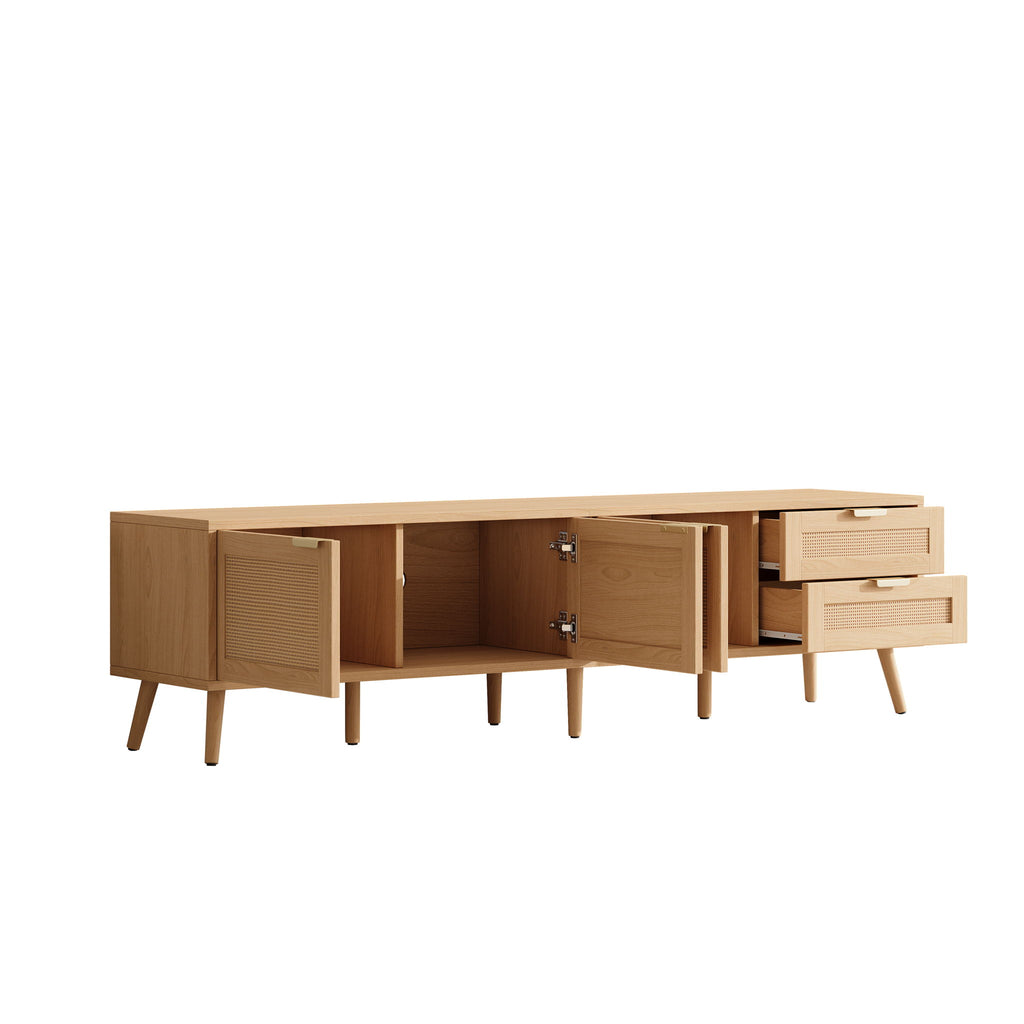 TV Stand, Media Console, 2 Drawers & Cable Management - Natural Wood