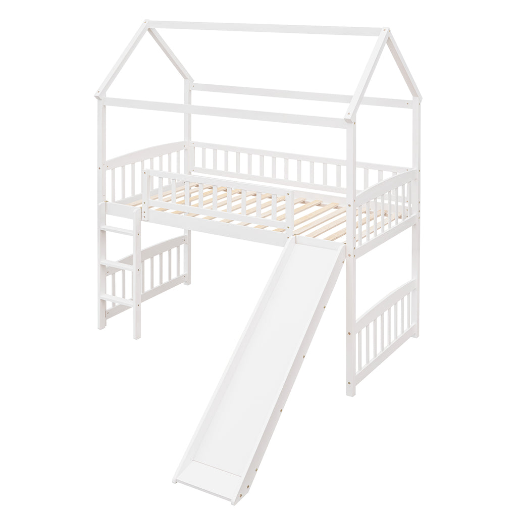 - [Elegant design] This Wood Twin Size Loft Bed with Slide is designed with a clean silhouette and a hue of elegance. It gives any room a spark of style that's both modern and timeless.