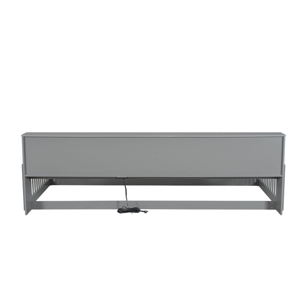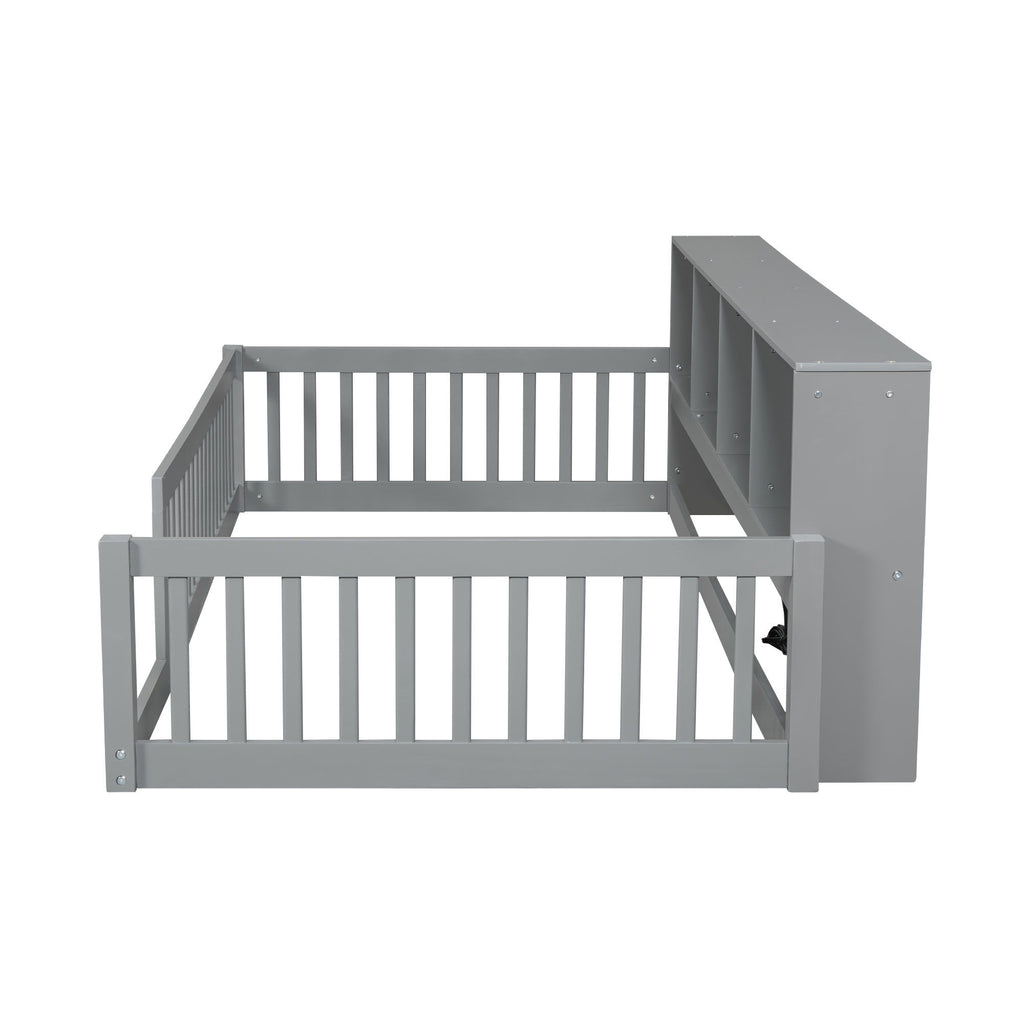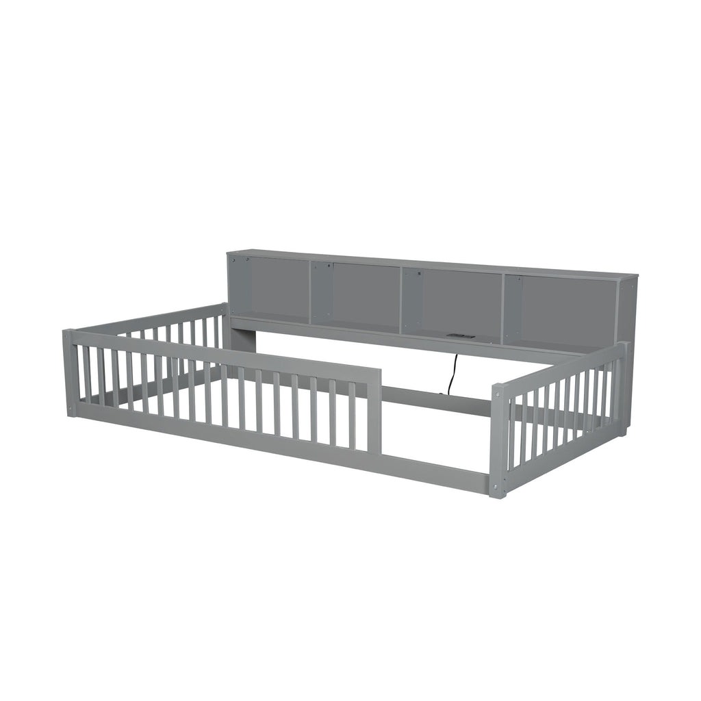 Twin Long Floor Bed With Storage Cabinets And USB Ports - Gray