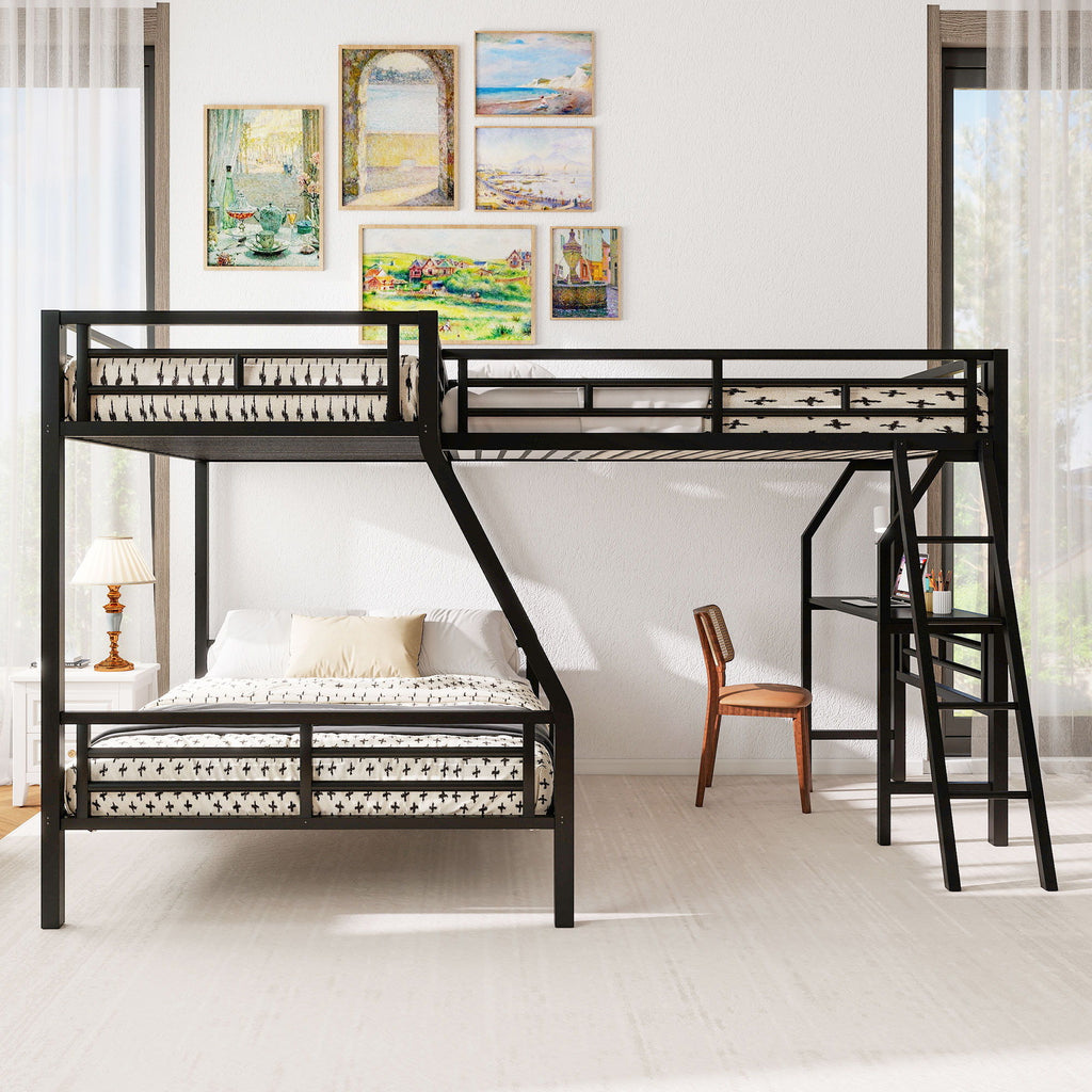 Twin Over Full Bunk Bed With Loft And Desk, L-Shaped Design For 3 Sleepers - Black