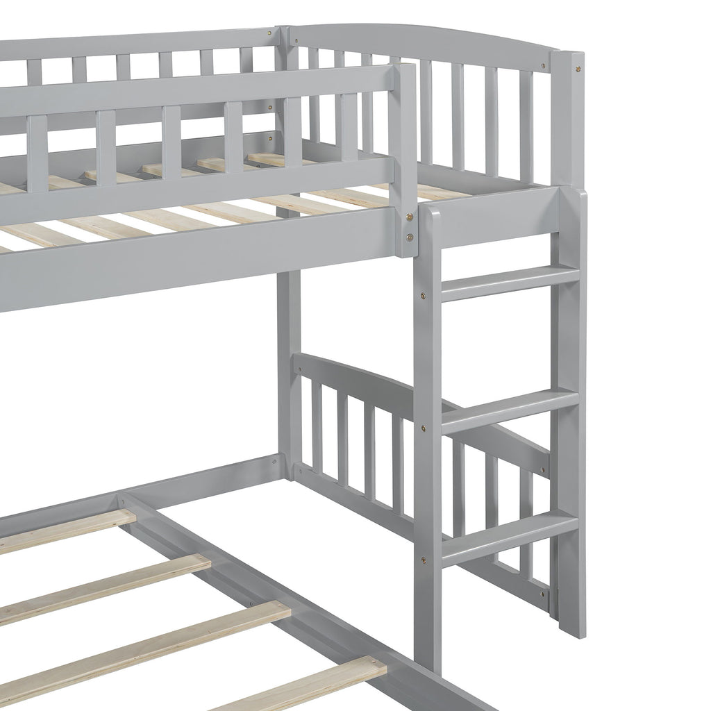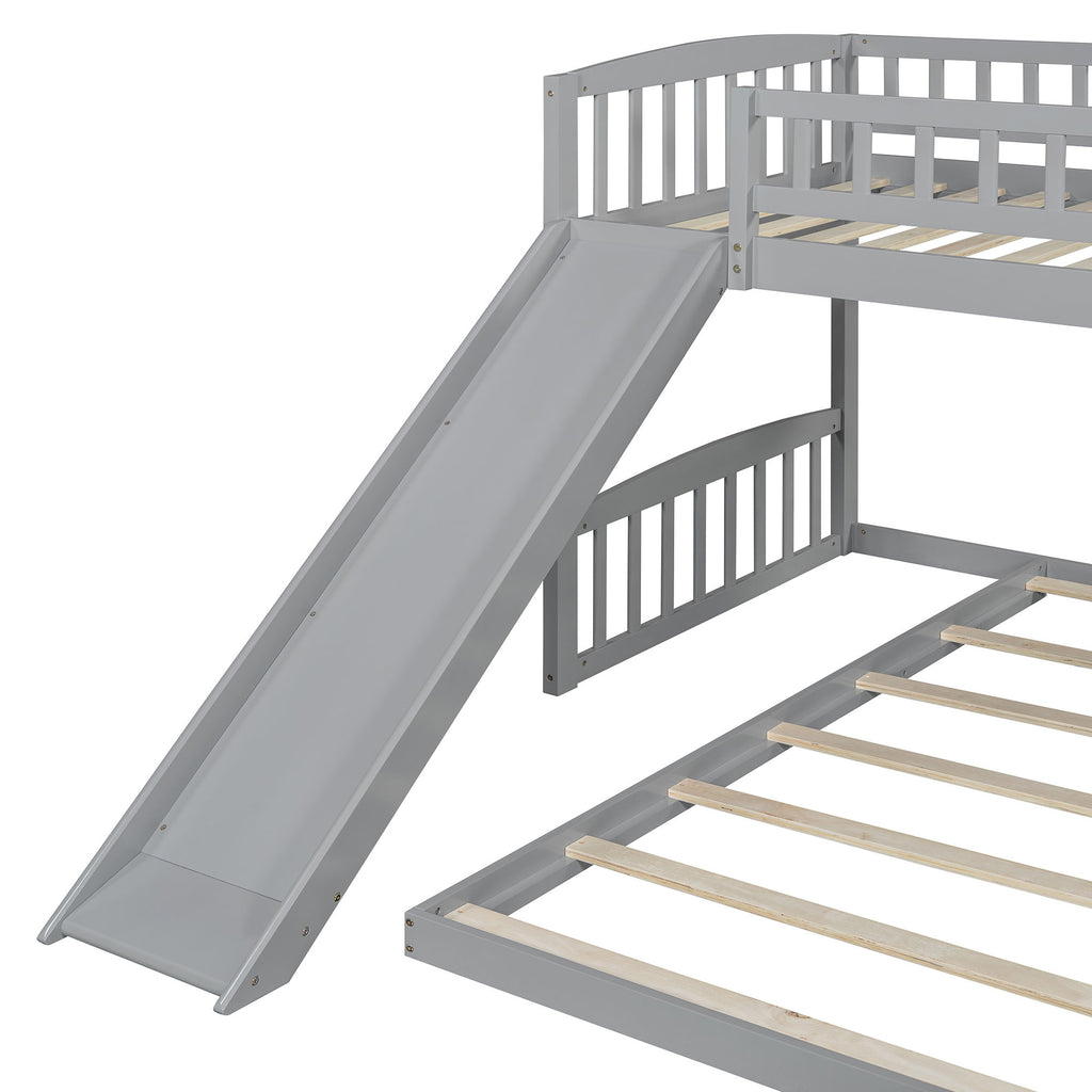 Twin Over Twin Classic Bunk Bed With Slide And Ladder - Gray