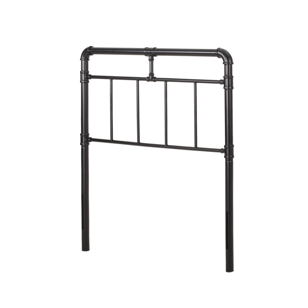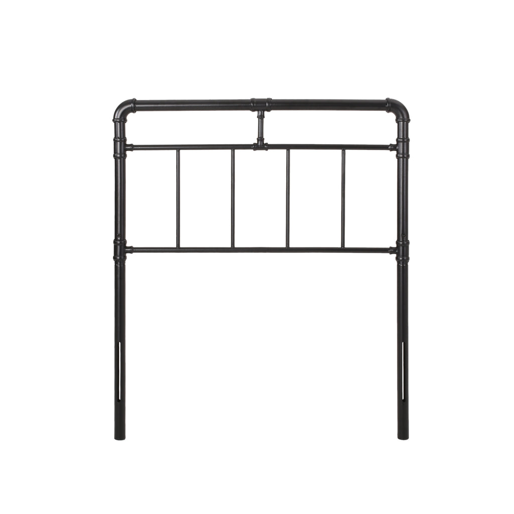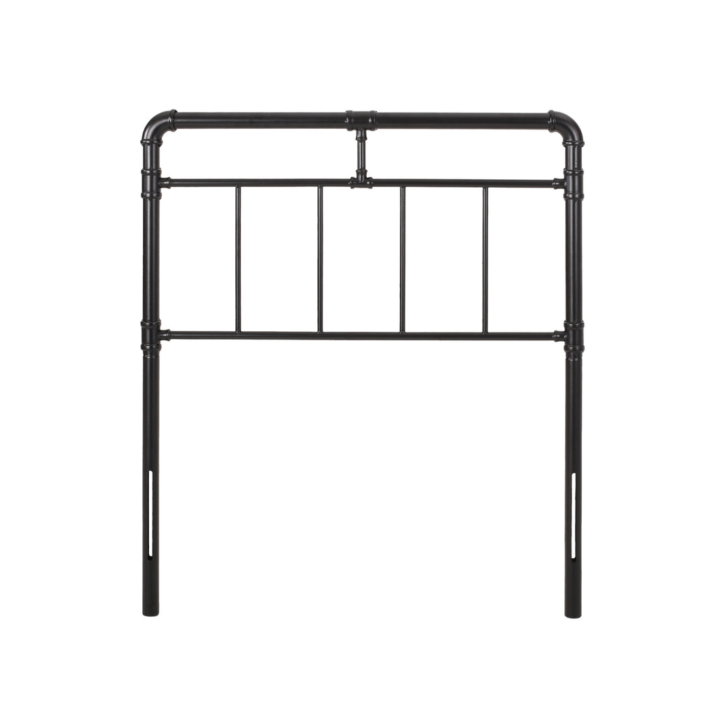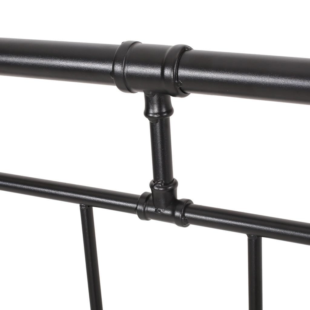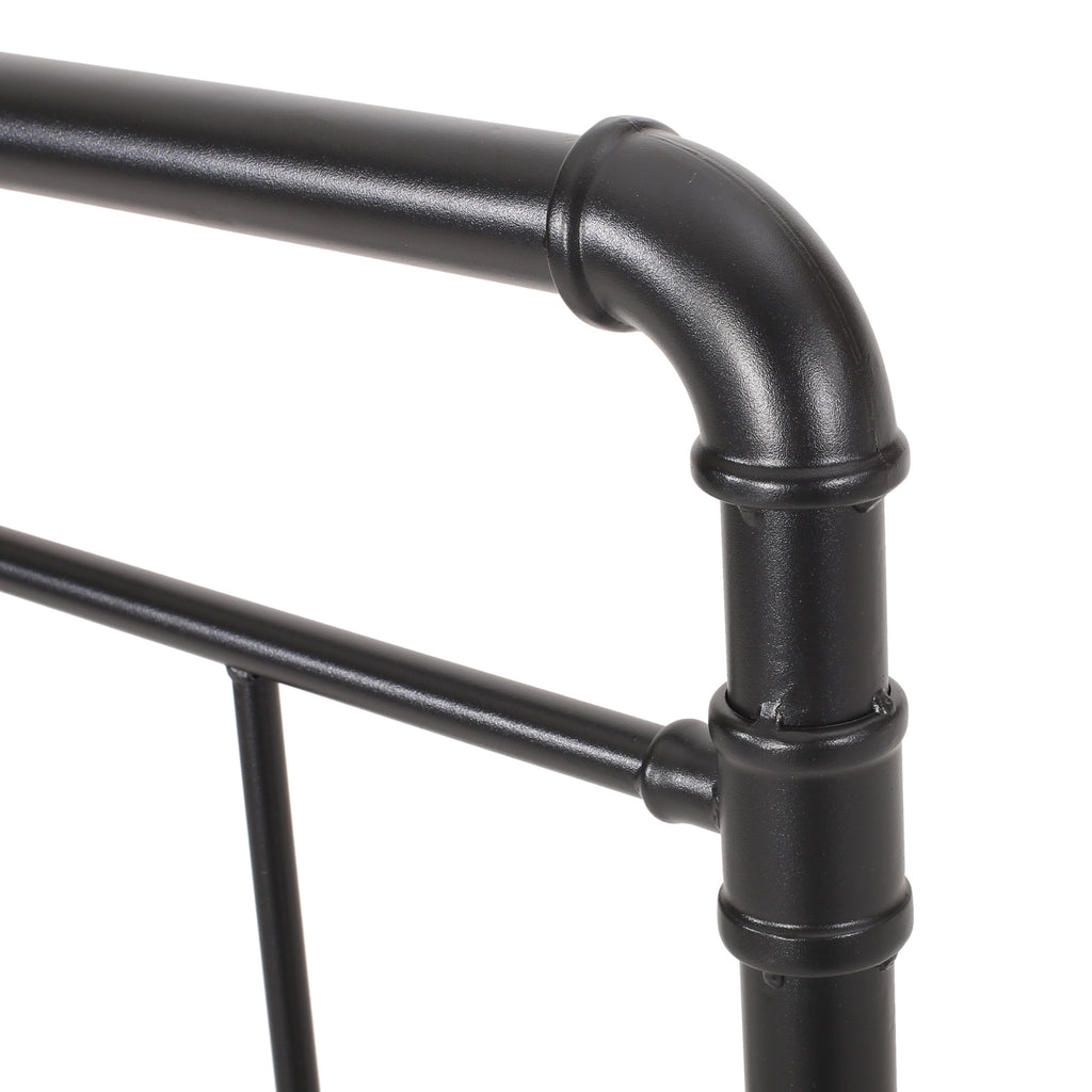 - IRON FRAME: The sturdy construction of this iron frame ensures that this headboard will hold up under heavy use. This simple look is accentuated with sleek pipe accents, adding to the industrial design of this frame.