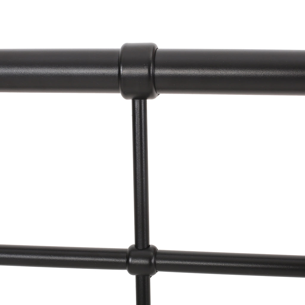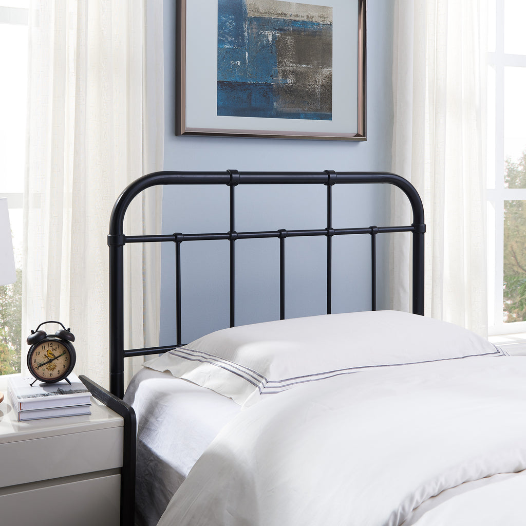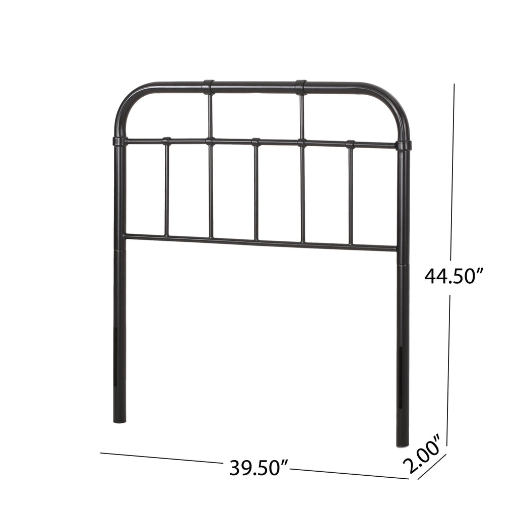 - IRON FRAME: The sturdy construction of this iron frame ensures that this headboard will hold up under heavy use. This simple look is accentuated with sleek pipe accents, adding to the industrial design of this frame.