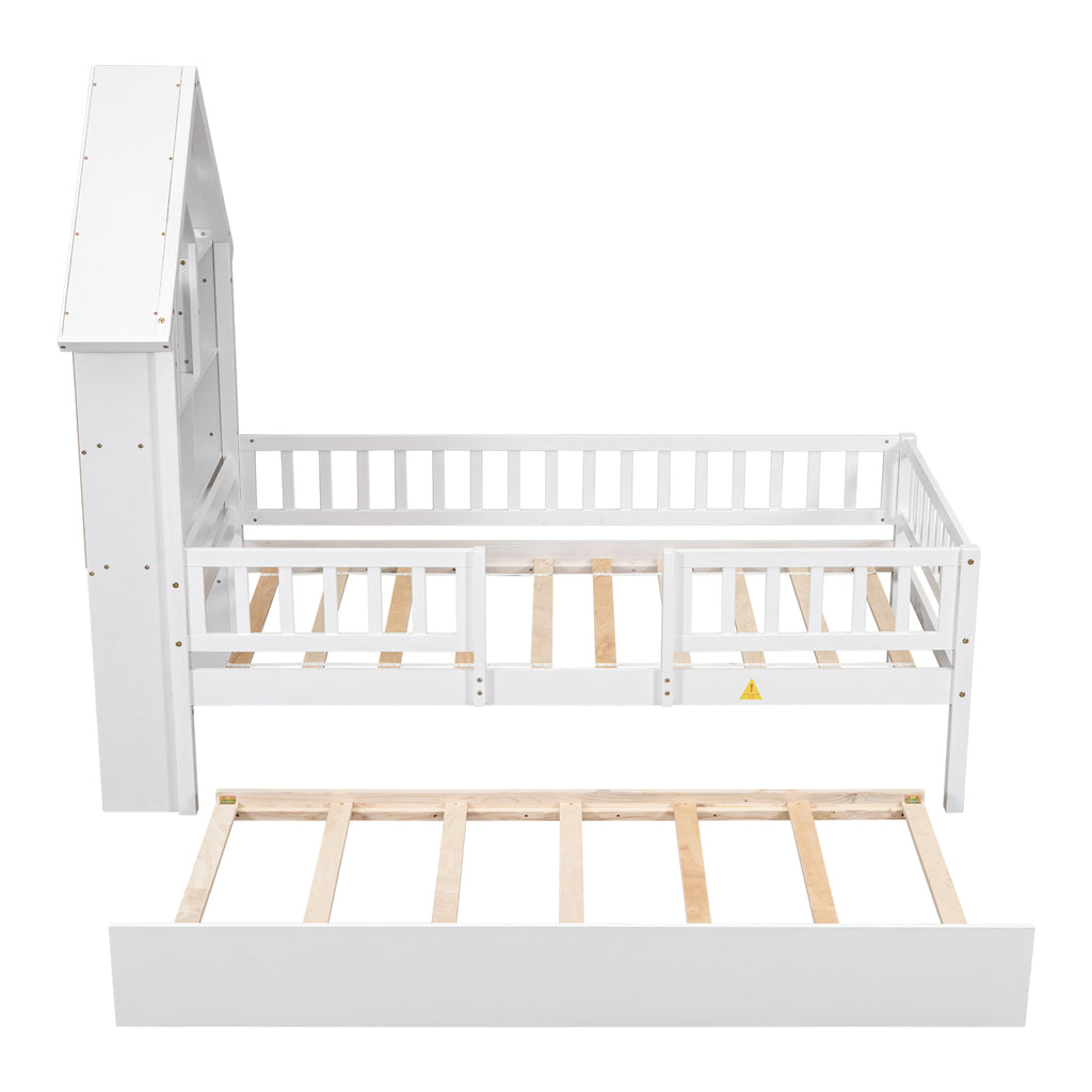 - [Stylistic Elements] The bed with a headboard of built-in shelves and drawers offers better organization of storage space, allowing your bedrooms to be neat and tidy. The pull-out trundle of the bed will accompany the guests who sleep over at your home to have joyful and restful nights.