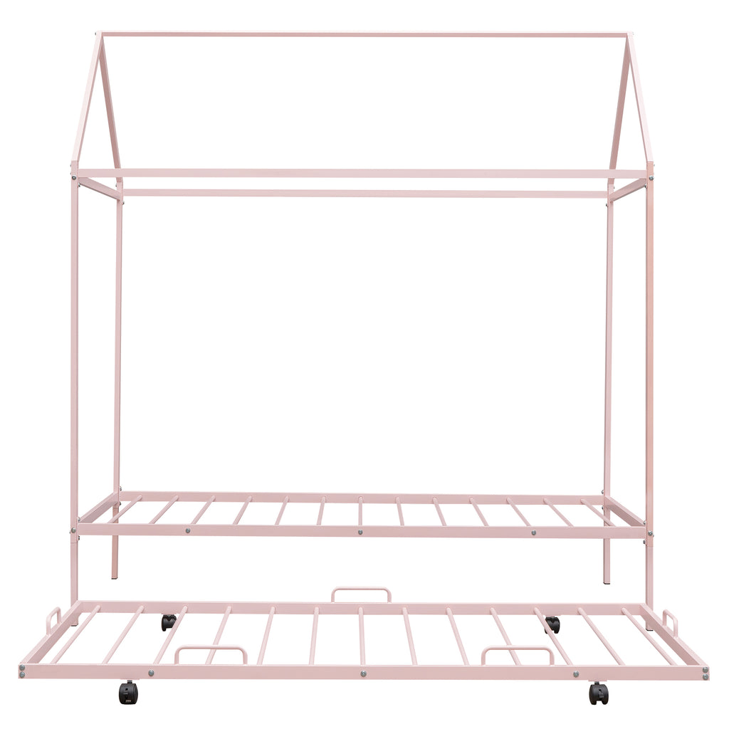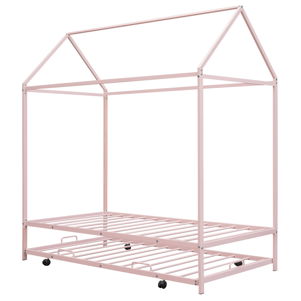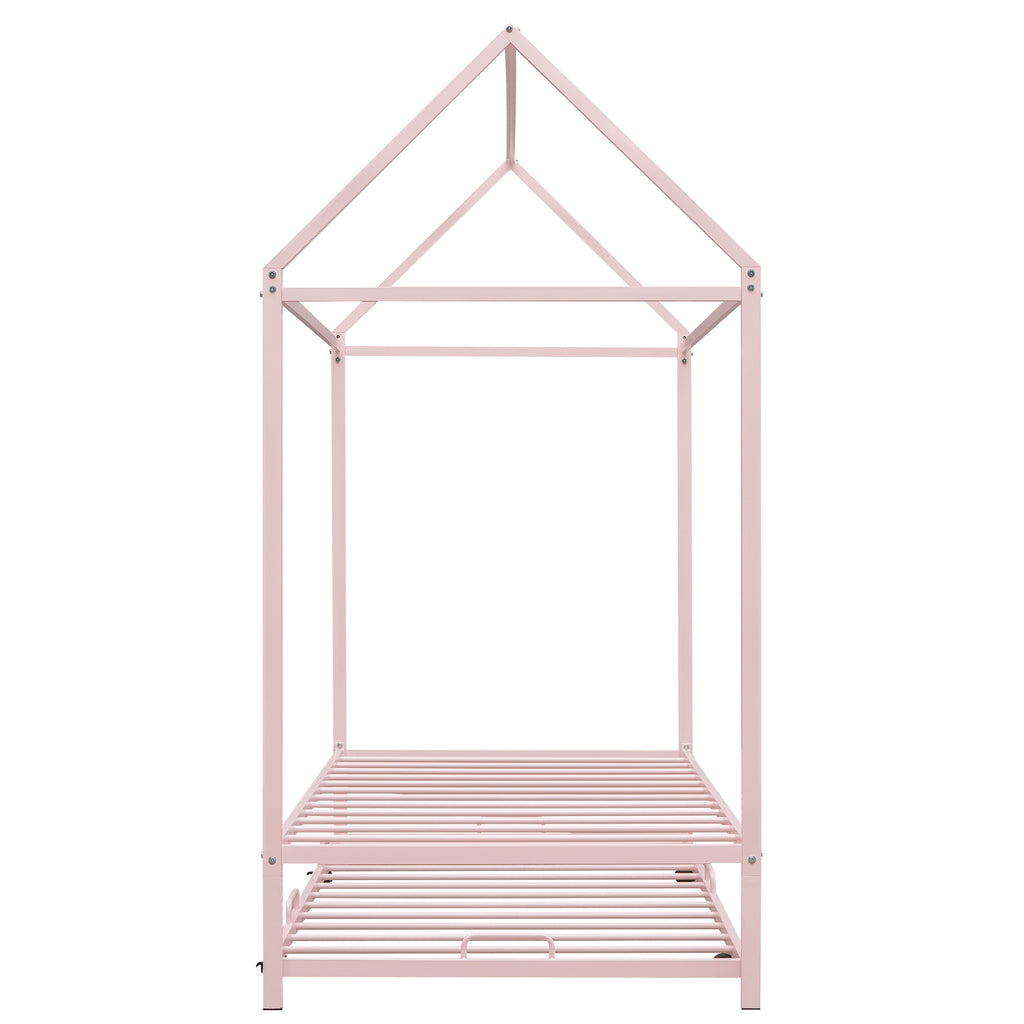 - [Solid & Sturdy] The kids house bed frame is made of Metal with Paintting, Metal slat provide strong support. The construction ensures both a lifetime of use, and a sturdy frame with a backrest which wont wobble.
