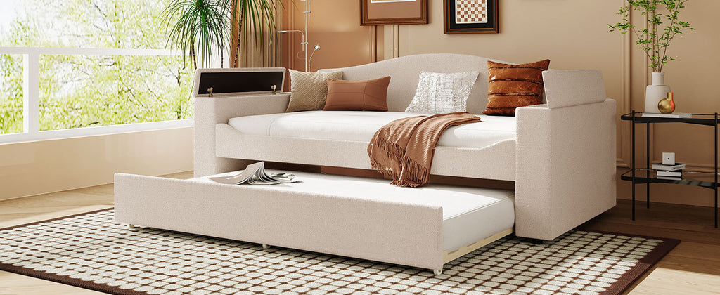 - [Storage Armrest]This elegant daybed comes with storage armrests on either side, which is at hand for you to store and get your daily items, snacks and drinks.This humanistic design of the bed brings easy and comfortable living exeperience.