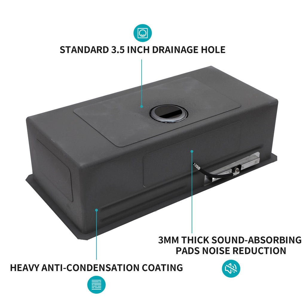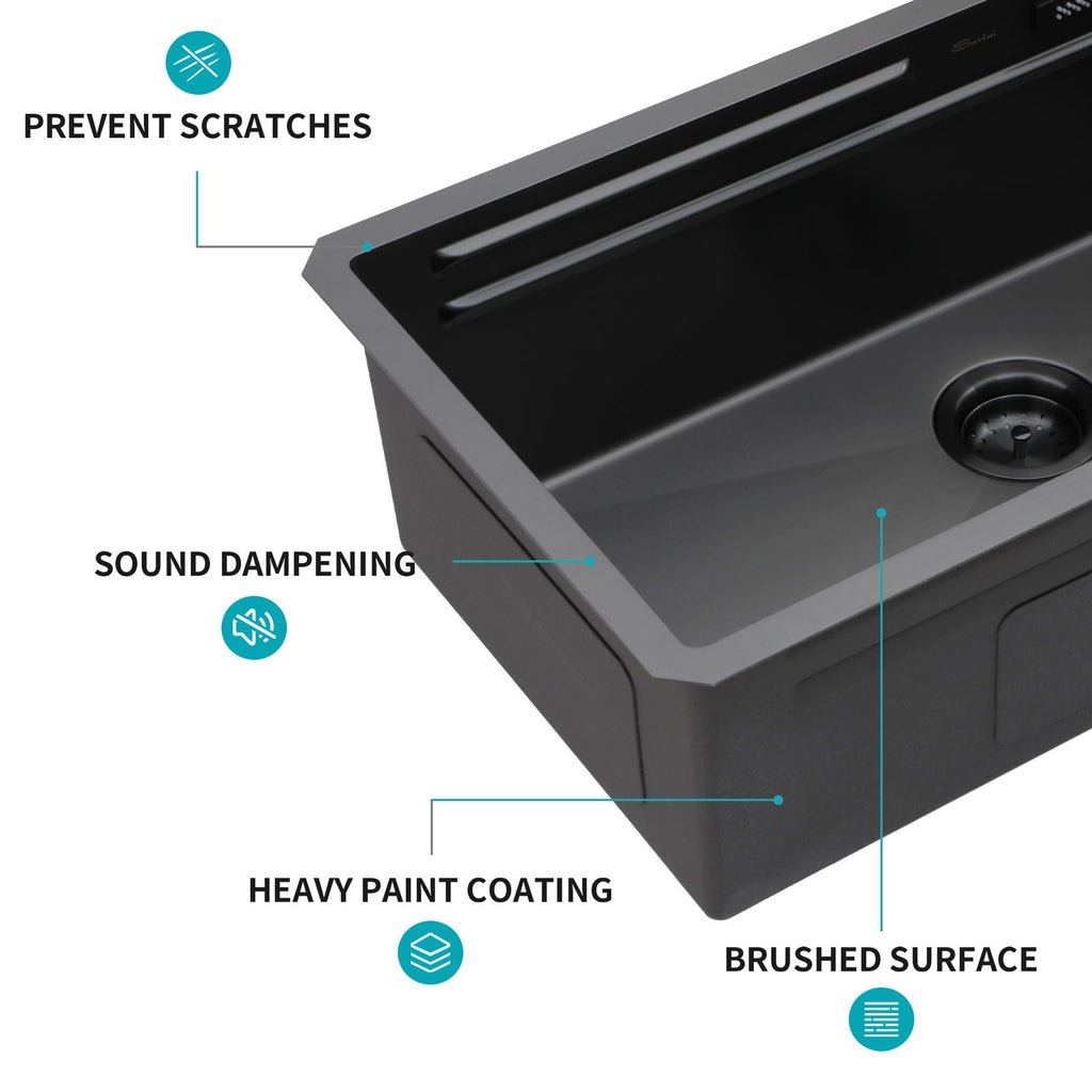 - Nano Technology Coating: Provides resistance to rust, stains, and scratches, maintaining the sink's appearance over time.