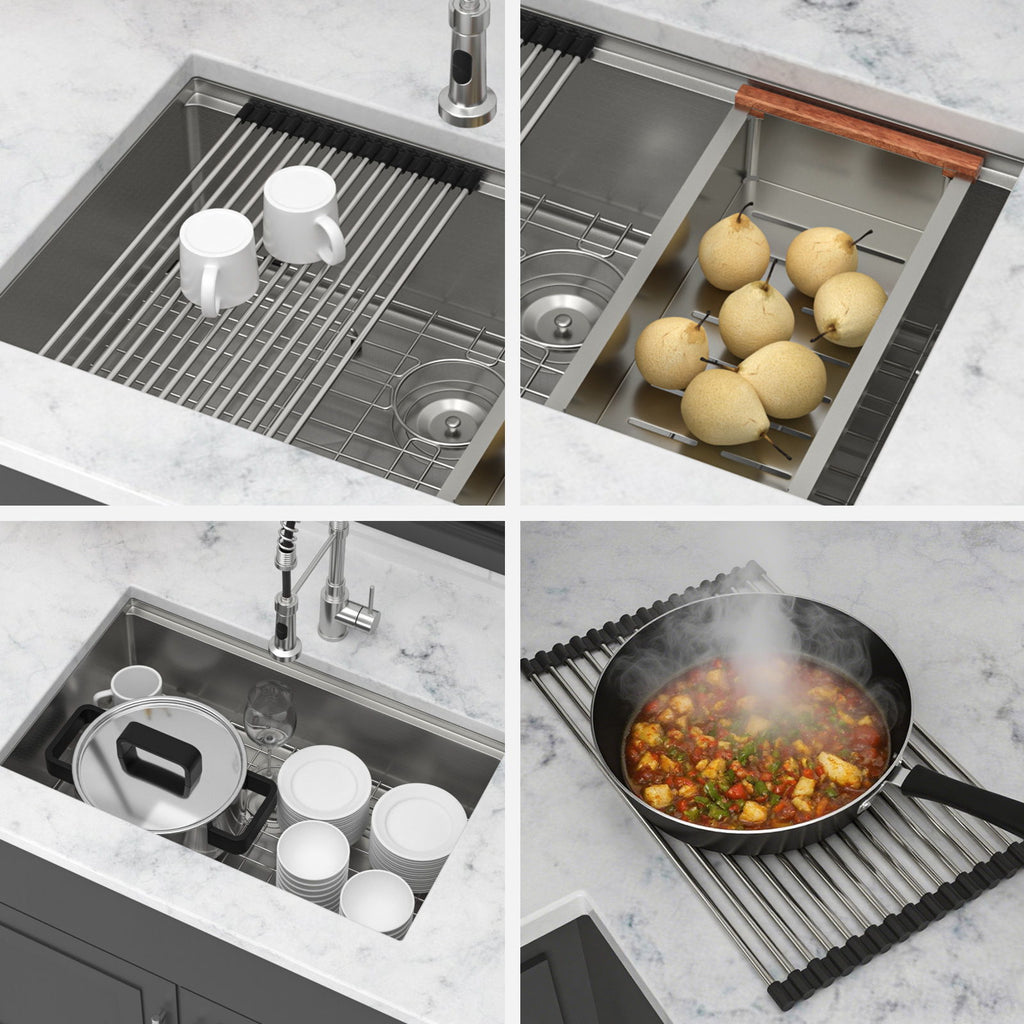 Single Bowl Undermount Workstation Kitchen Sink 16 Gauge Stainless Steel - Black