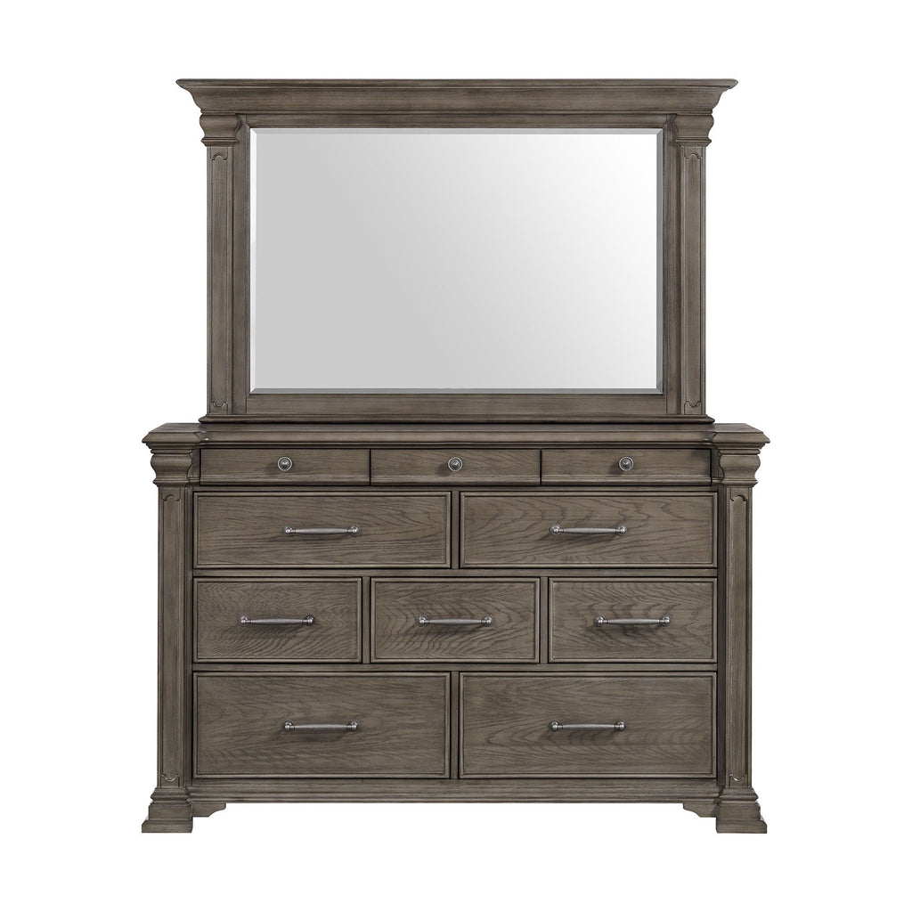 Experience luxurious comfort and elegant style with the Kings Court 10 Drawer Dresser. This stunning bedroom set features refined molding, a high headboard, and touch-button mood-lighting integrated into the headboard for a serene ambiance. Black felt lined top drawers and cedar veneer bottom drawers ensure that your valuables are protected. Transform your bedroom into a haven of relaxation with this gorgeous Dresser!