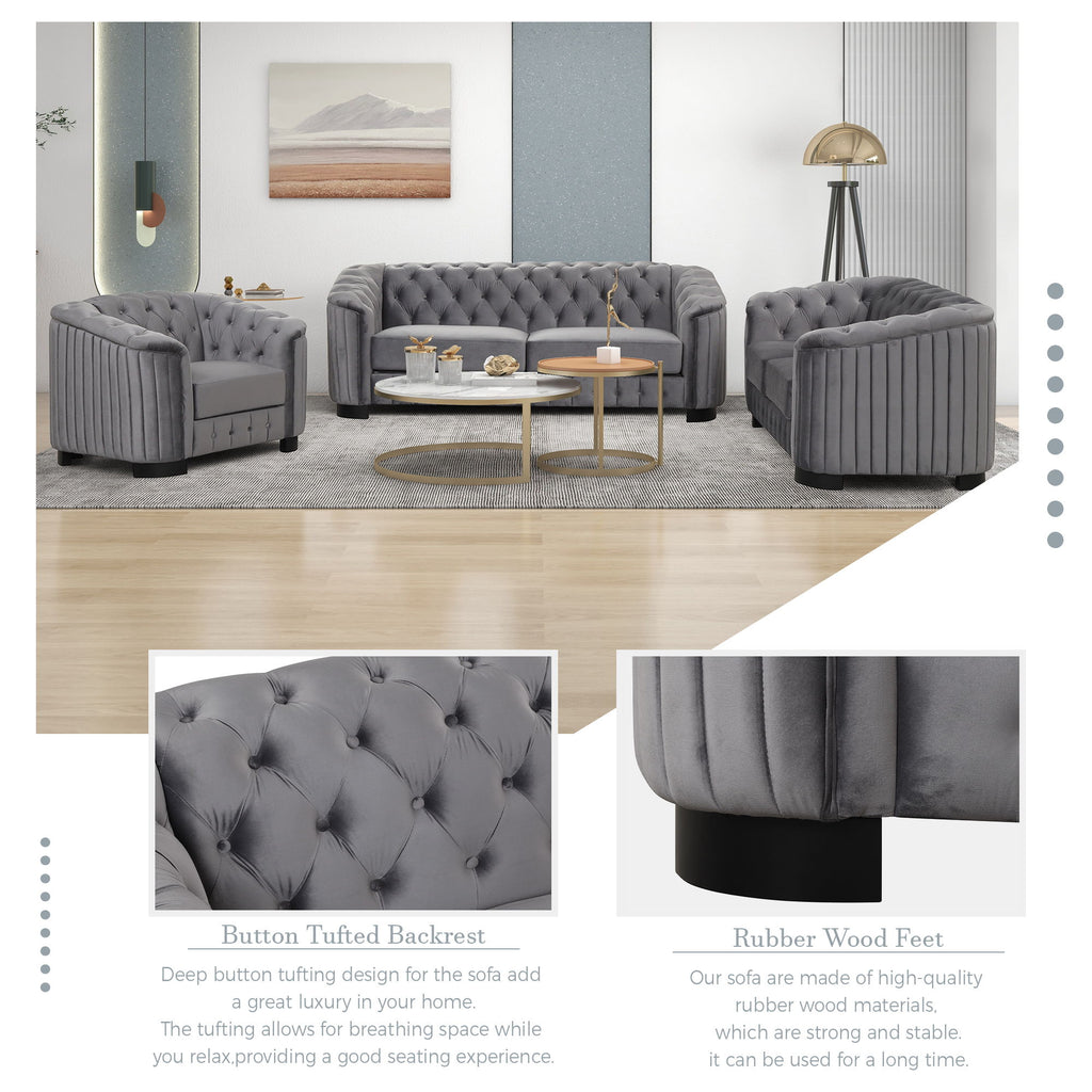 - Spacious Seating: Offers ample seating with a three-seat sofa, loveseat, and single chair.