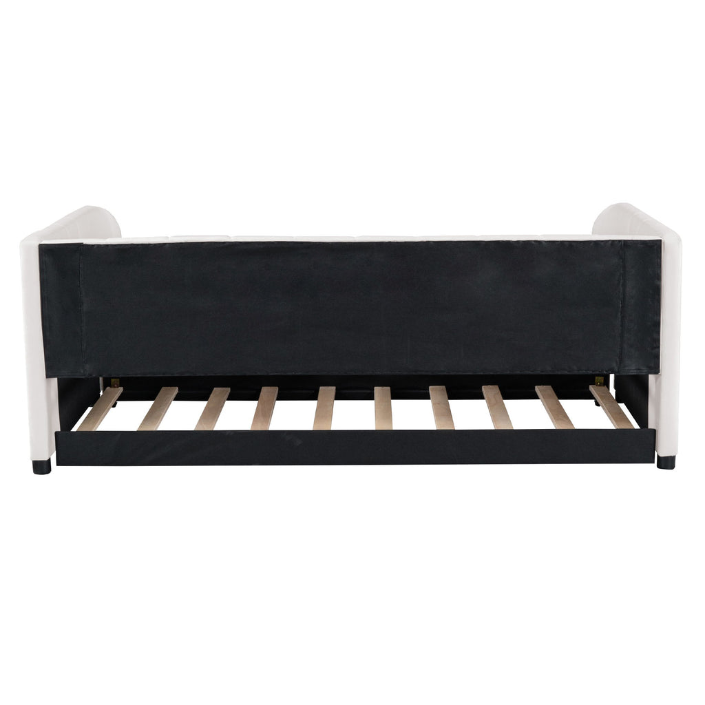 Twin Size Upholstered Daybed With Ergonomic Design Backrest And Trundle - Beige