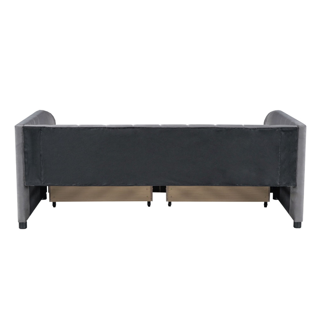 Twin Size Upholstered Daybed With Ergonomic Design Backrest And 2 Drawers - Gray