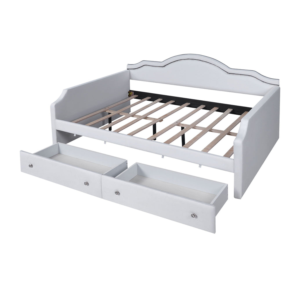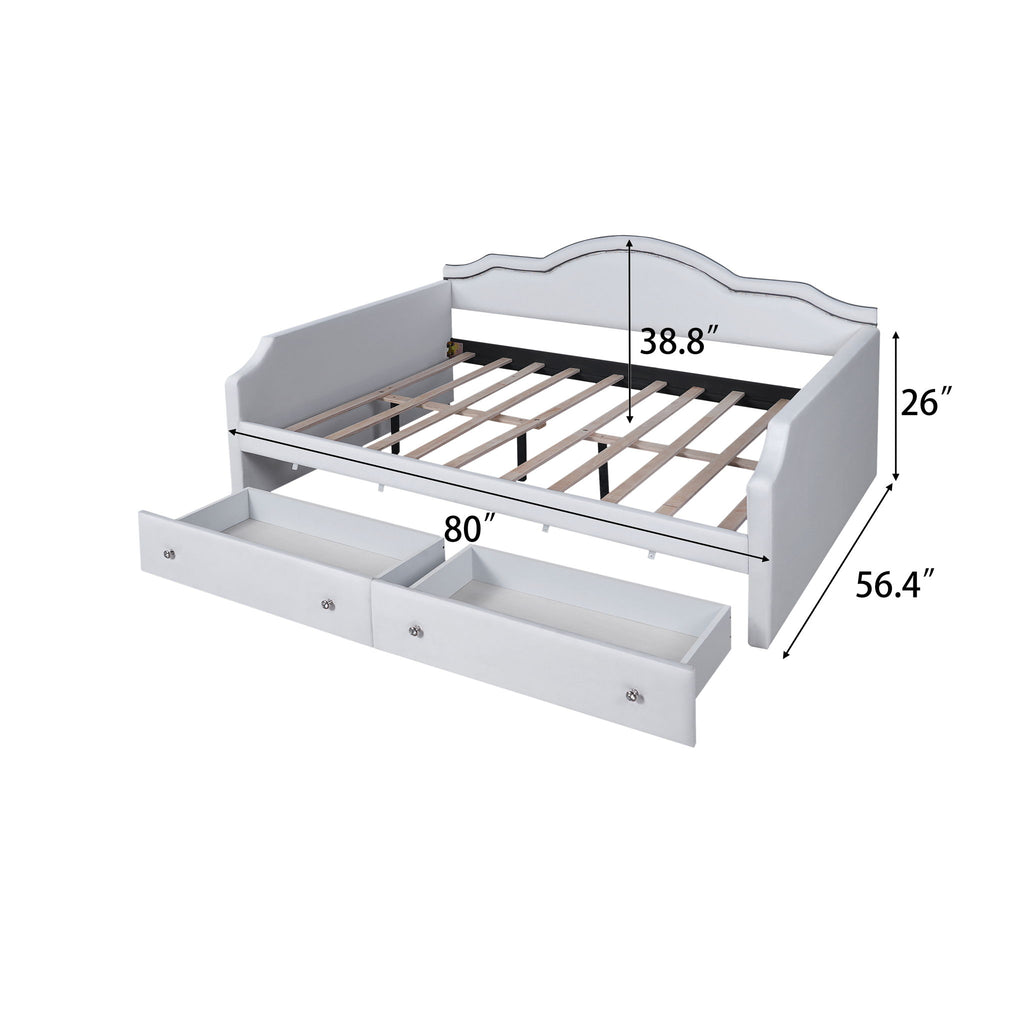 Full Size Upholstered Daybed With LED Lights And 2 Drawers - Beige