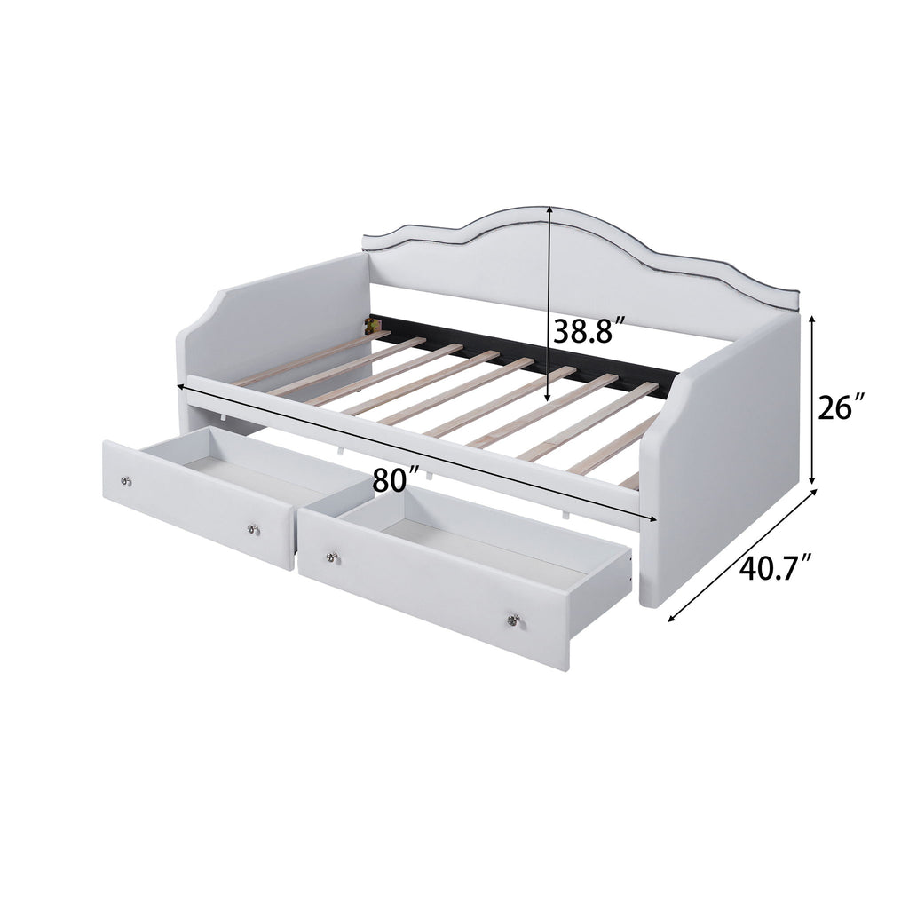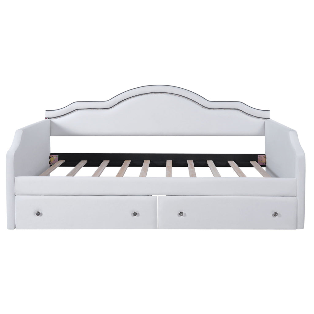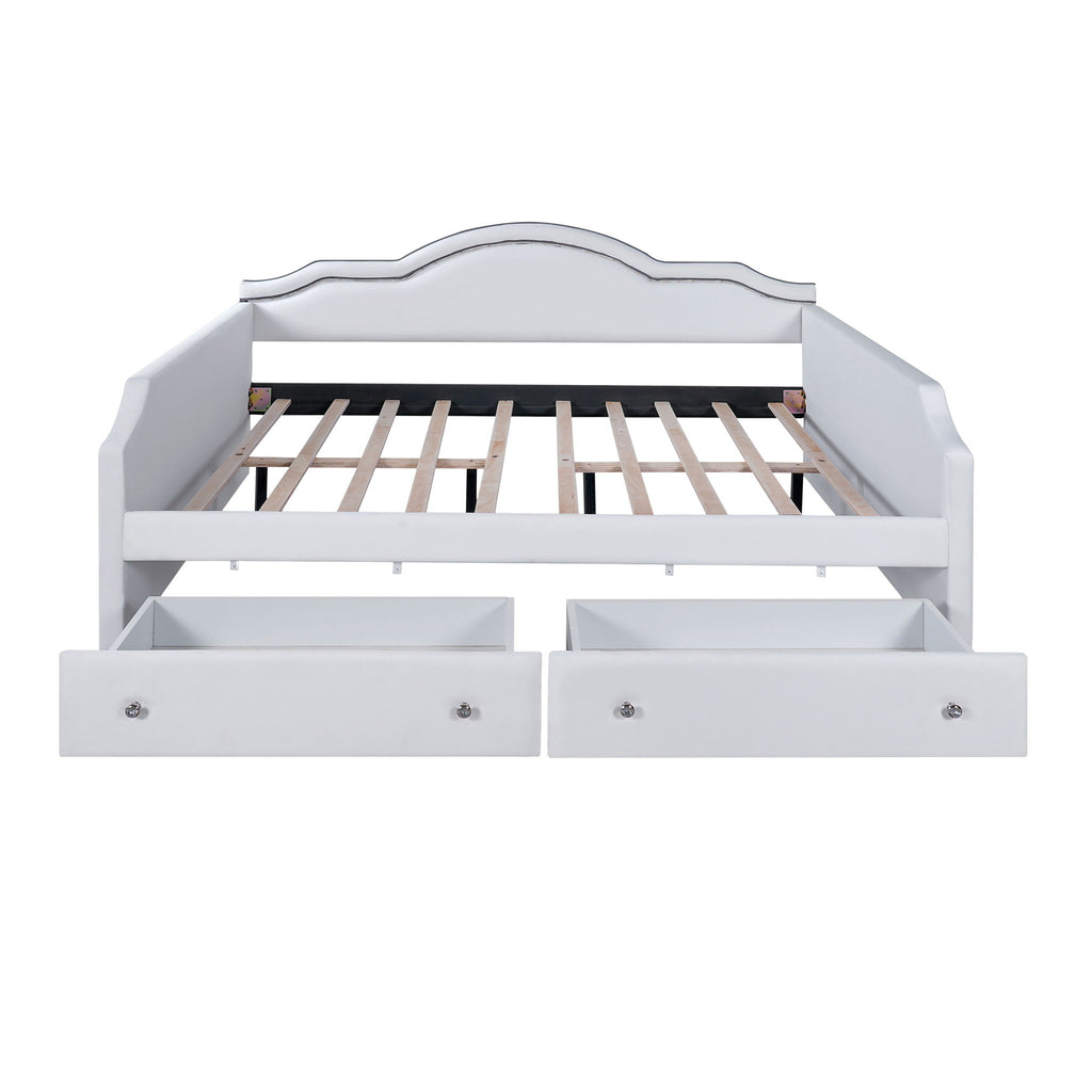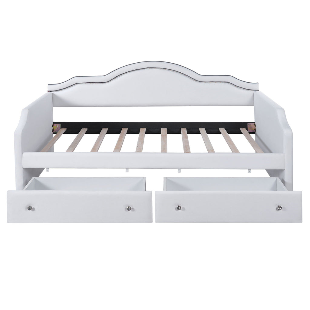 Twin Size Upholstered Daybed With LED Lights And 2 Drawers - Beige