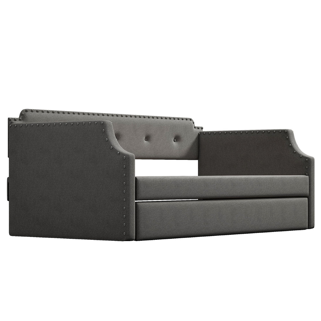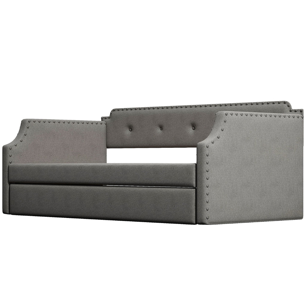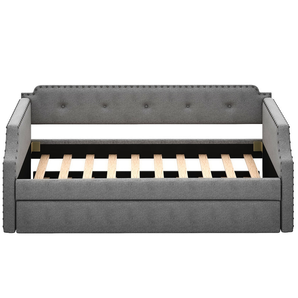 Upholstered Daybed With Trundle, Twin, Slat Support - Gray
