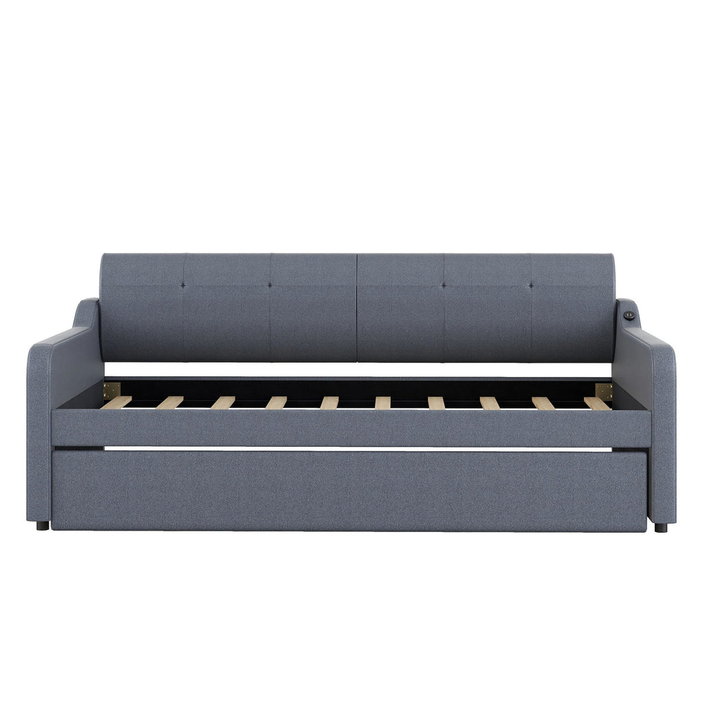 Twin Size Daybed With Trundle And USB Charging - Gray