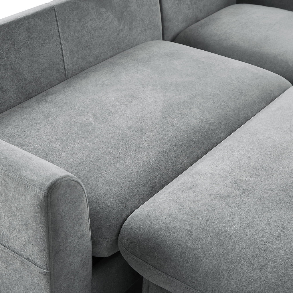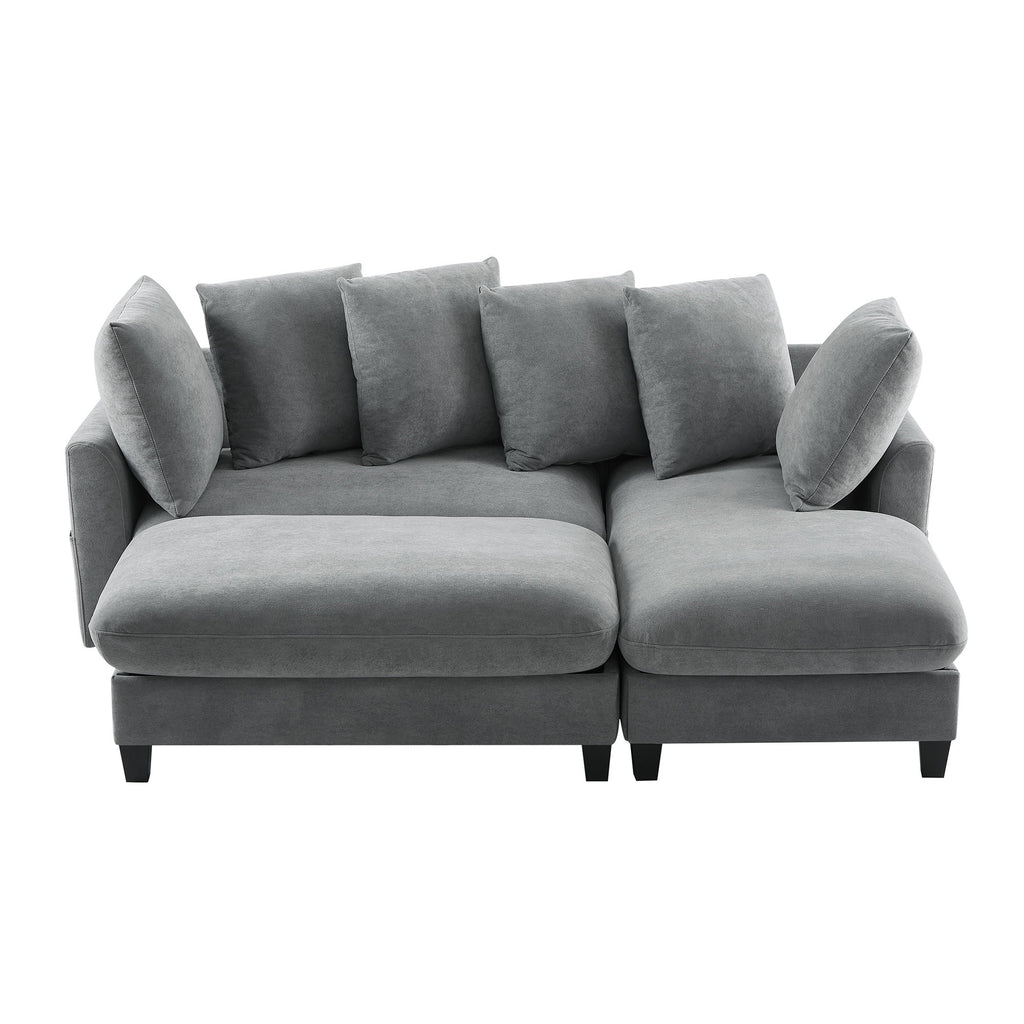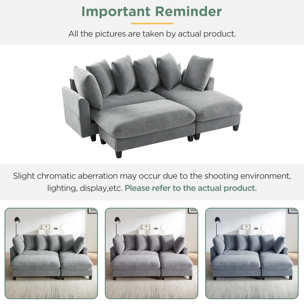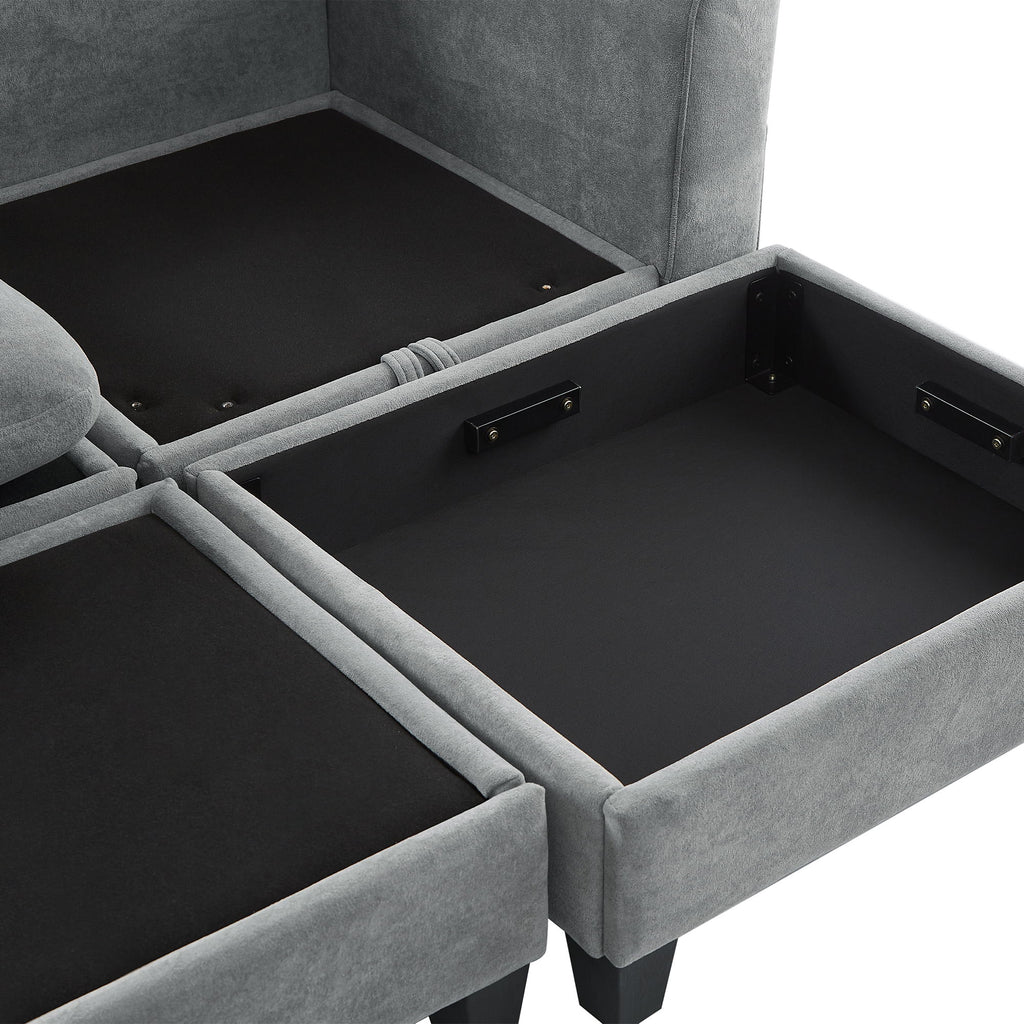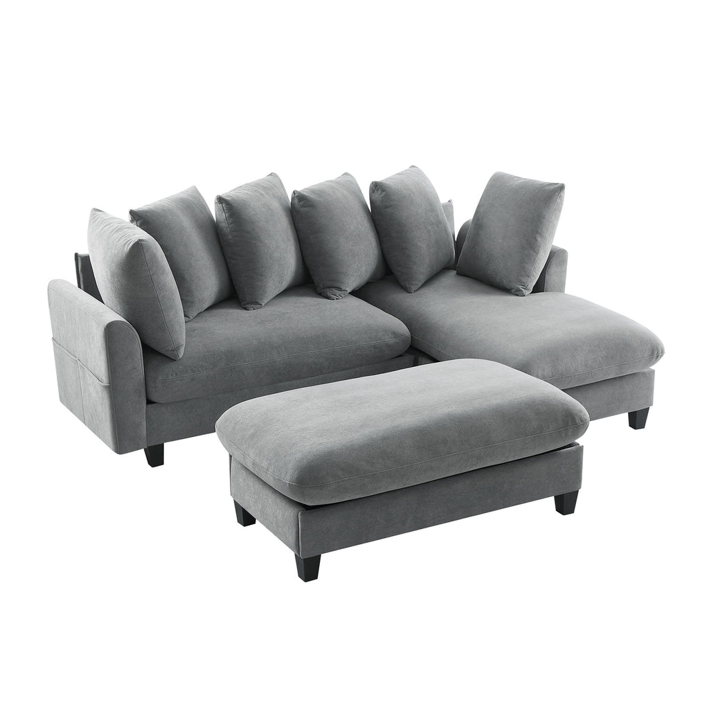 Modern L Shaped Sectional Sofa With Storage, Movable Ottoman, And Throw Pillows - Gray