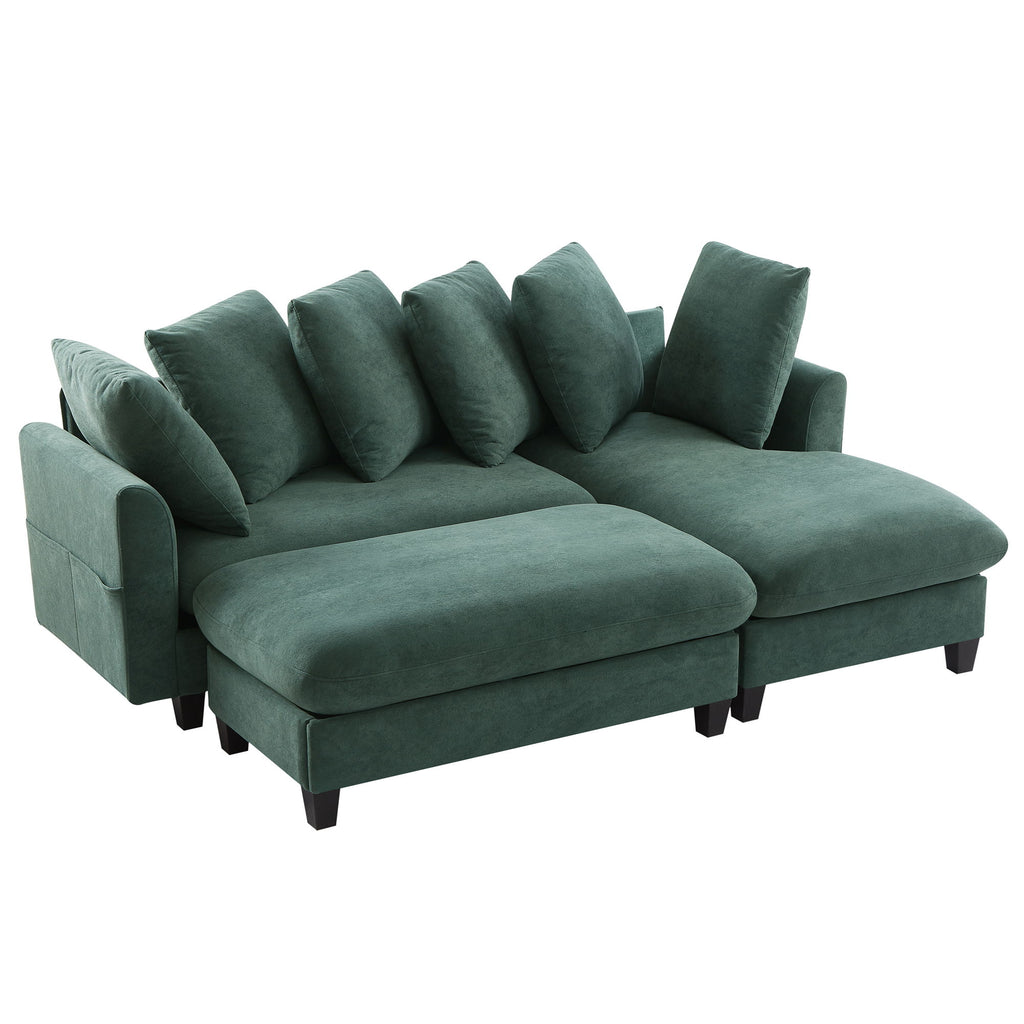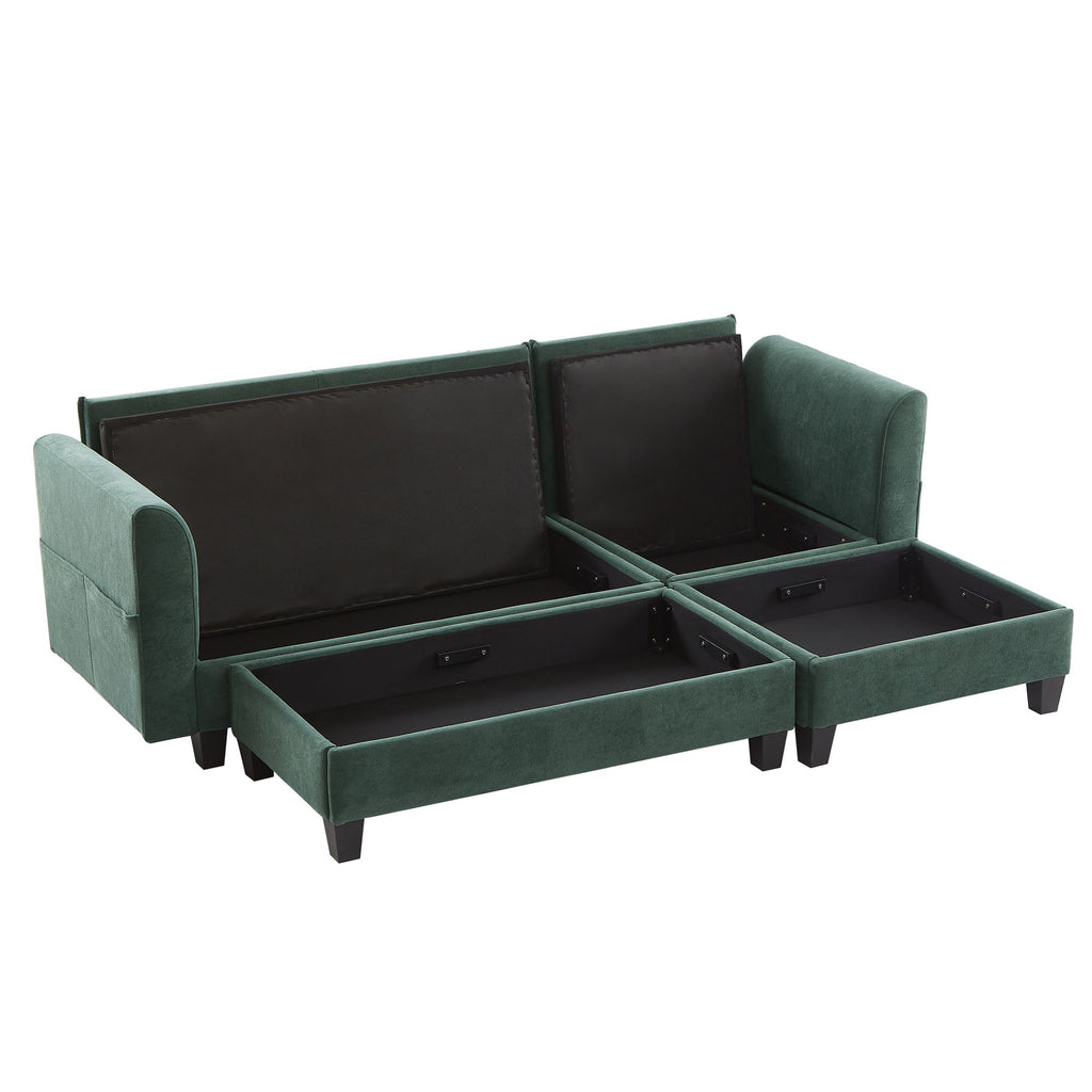 Upholstered Sectional Sofa With Movable Ottoman And Storage - Green