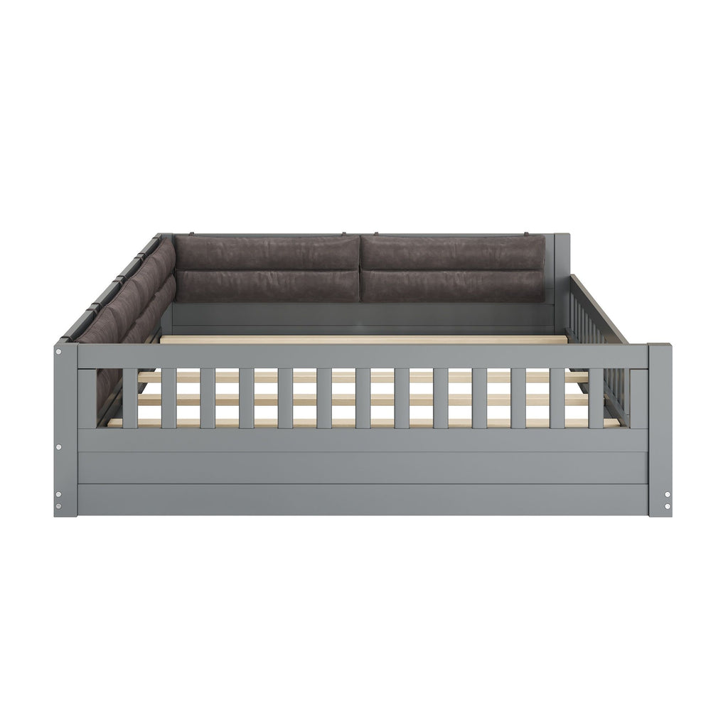 Upholstered Platform Bed With Guardrail And Pillow, Full Size - Gray
