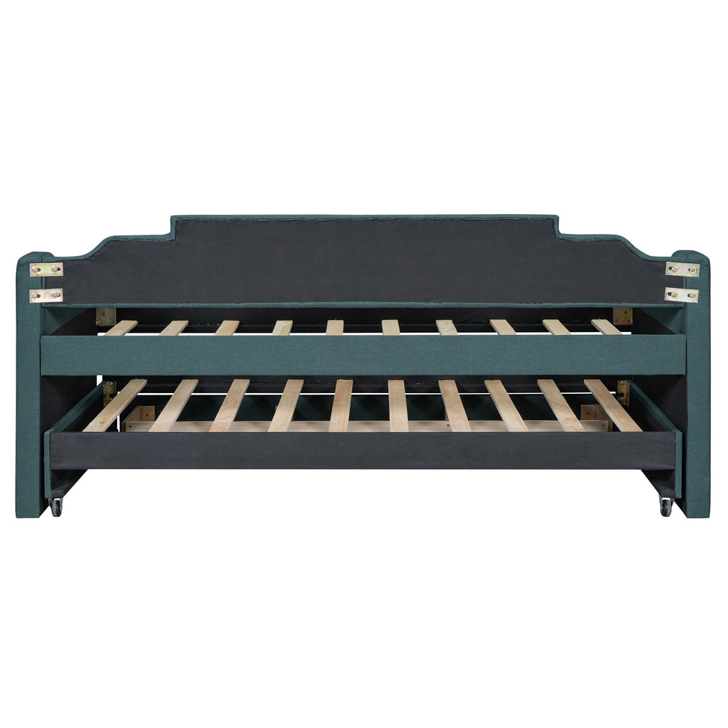 Twin Size Upholstered Daybed With Trundle And 3 Drawers - Green