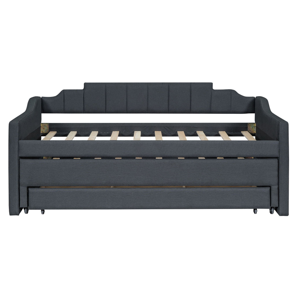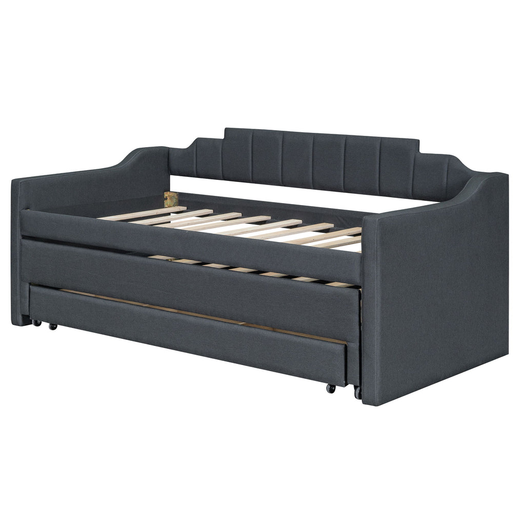 Twin Size Upholstered Daybed With Trundle And 3 Drawers - Gray