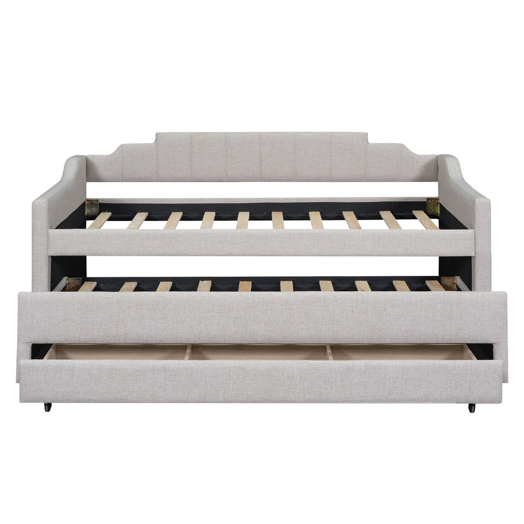 Twin Size Upholstered Daybed With Trundle And 3 Drawers - Beige