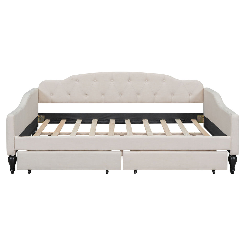 Upholstered Tufted Full Size Daybed With 2 Drawers - Beige