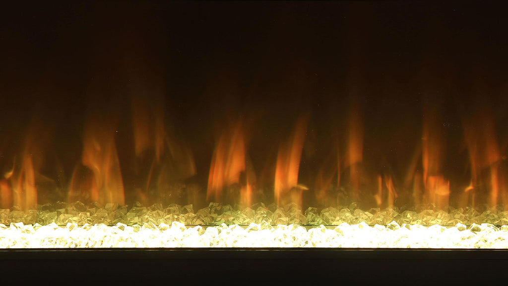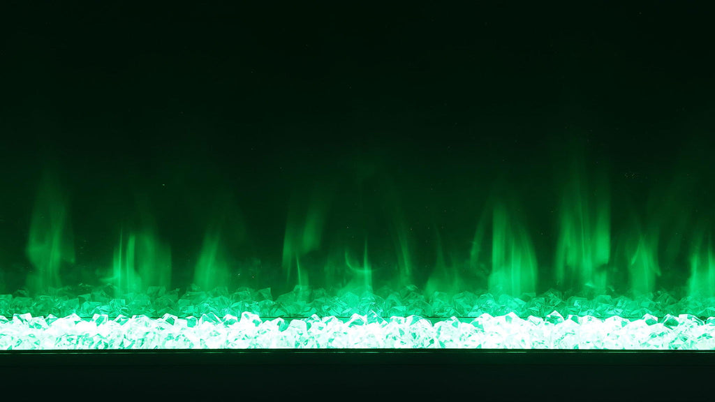 Create incredible ambiance in your living room with a modern TV stand that includes a visual flame box. It delivers realistic three-dimensional flames that offer 13 color options and adjustable brightness to create the perfect mood. The case features clean, straight lines that complement a modern or minimalist living space. It accommodates a television up to 72 inches and is a perfect choice under a wall-mounted television, creating a place for peripherals and decor that bring personality. A mirrored finish lends chic flair, sure to complement your contemporary decor. Please note that this product does not include a heat function.