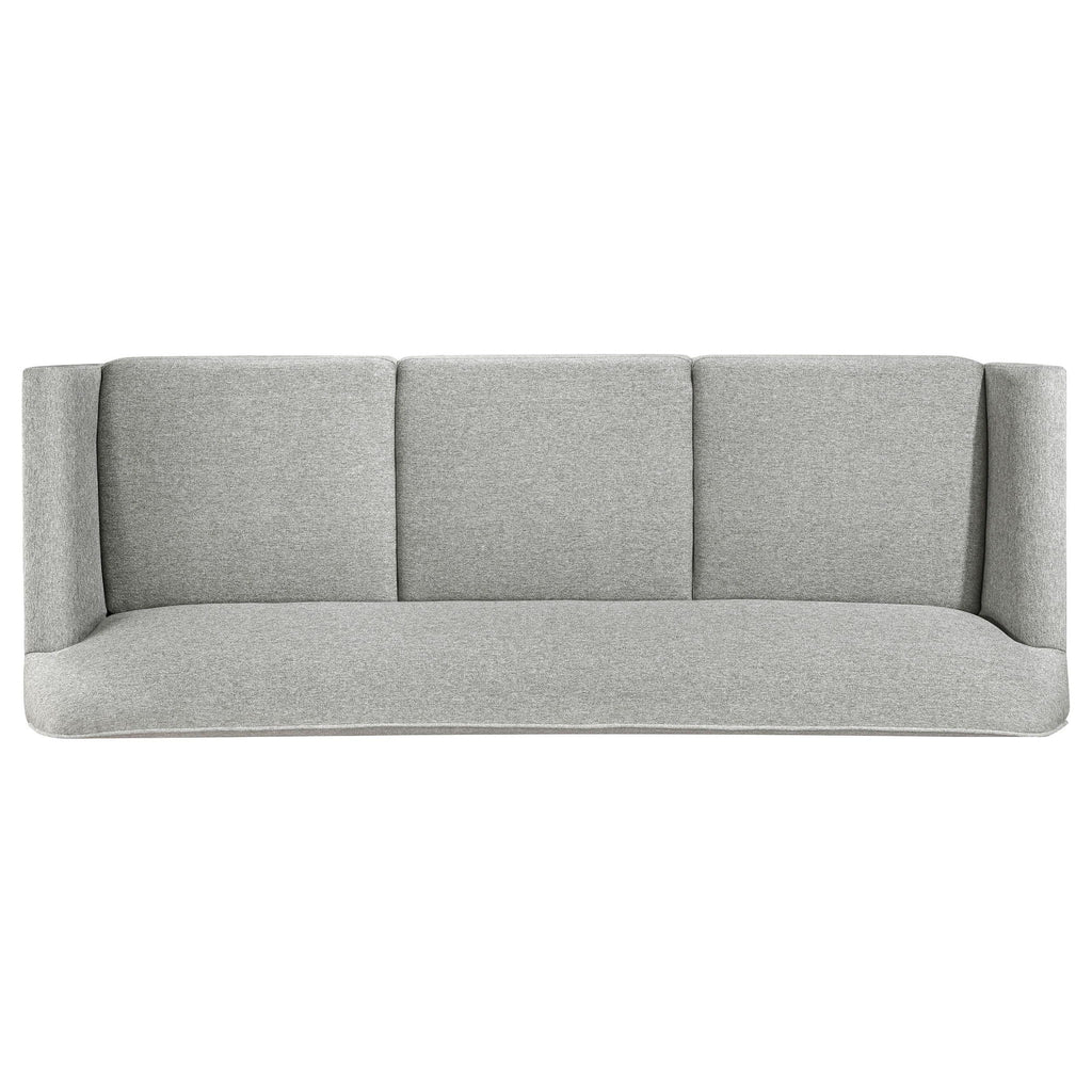 A seamless fusion of modern curves and vintage roots, this sofa lends refined presence to any space. Flared arms and a smooth, contoured backrest exude retro charm, while plush cushions offer an inviting retreat. A light-toned wood frame crafted from solid rubberwood surrounds the base in sculptural support. Upholstered in soft polyester fabric, this tailored sofa balances comfort and design for stylish lounging in living rooms or cozy nooks.