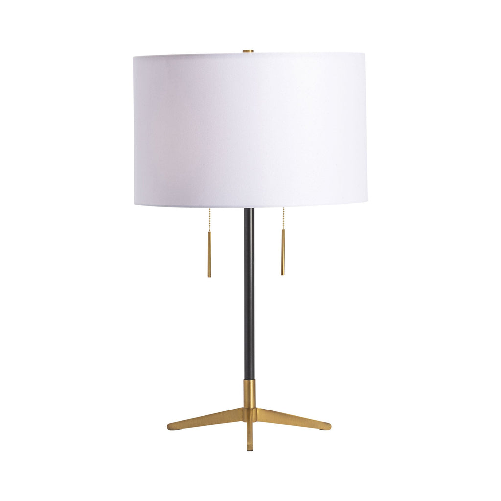 The Crestview Collection Veda Table lamp inspires a mid-century classic style. Featuring a mix of metals of blackened bronze and brass, this floor lamp is stylish and sturdy. Also featured are twin pulls, a double socket, and a white linen drum shade. This modern style lamp will fit perfectly in any room in your home.