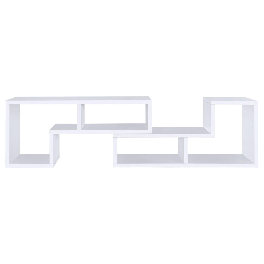 Perfect for a variety of uses, this two-piece bookcase and TV console is fabulously versatile. It allows you to switch between various bookcase and TV stand configurations for your convenience. Bold, L-shaped shelves are arranged in striking geometric designs for a modern look. A white finish enhances its contemporary appeal. Crafted from top quality materials, this bookcase is sturdy, stylish, and smart.