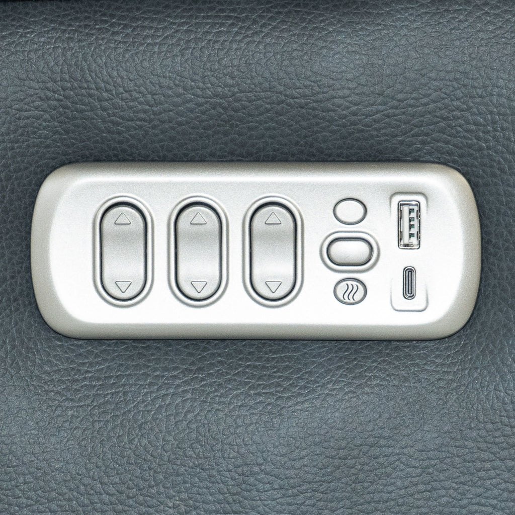 A versatile showstopper, the Vernon power recliner has everything you need for ultimate comfort. Its sleek, modernized silhouette is upholstered in a family-friendly, leather-like fabric with CloudLux™ down alternative seat topper and headrest that will put you on cloud nine. Customizable Zero Gravity recline, and adjustable heat and massage bring the best in relaxation, while the arms each have cupholders to keep refreshments within reach. Swivel around or gently glide back and forth for versatile leisure. Kick back and stand out, all with Vernon.