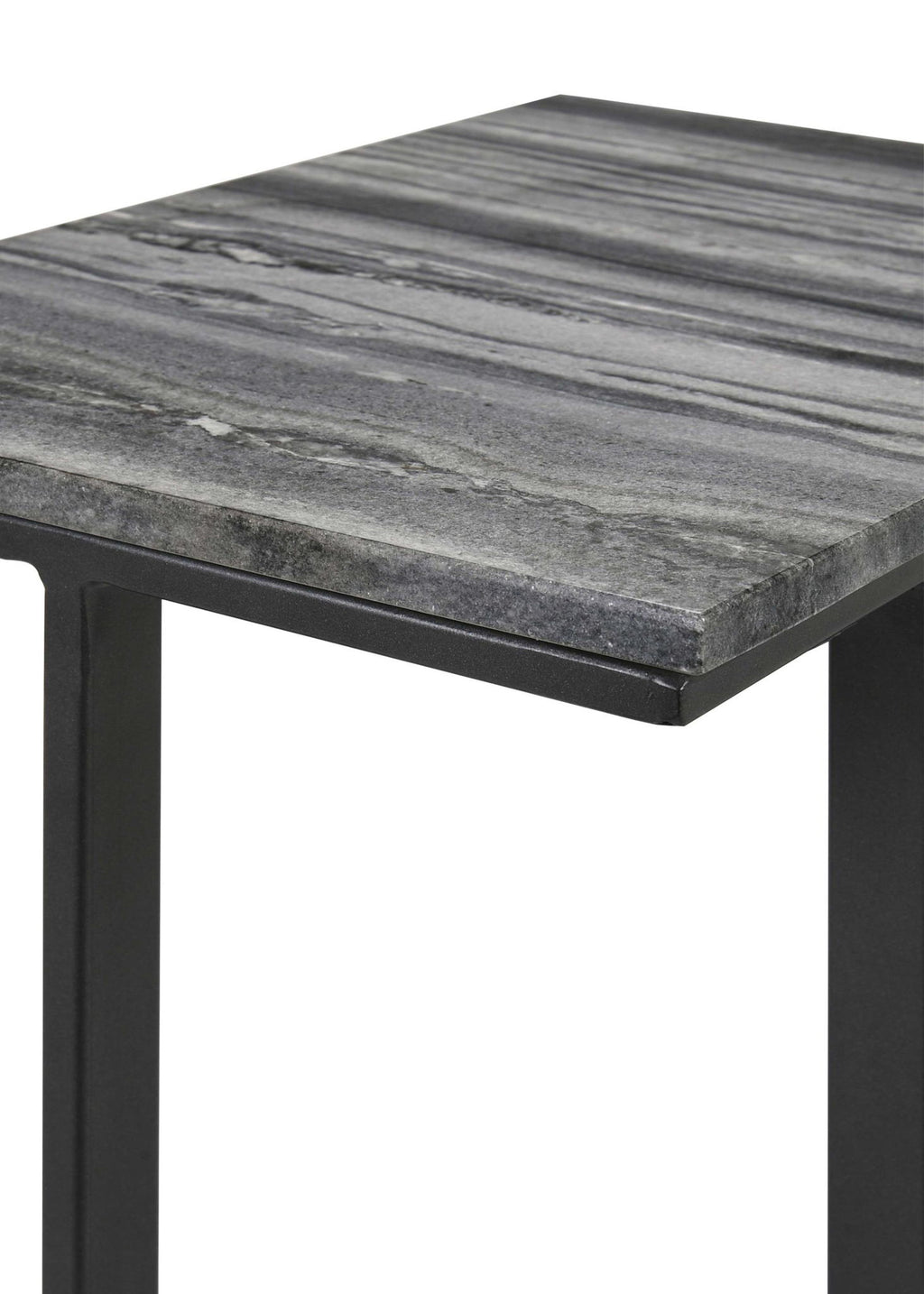Keep a drink or snack close by as you watch a favorite TV series. This contemporary accent table offers a spacious surface area for mugs, tablets and more with its classically designed marble top. The smooth and polished marble top rests on an iron cantilever style base that extends the top gracefully over a sofa or armchair, inviting you to rest personal devices, drinks and more within reach. The cantilever base also offers a chic aesthetic with its slim tubular design and flush base. Doubling as a laptop stand, this accent table makes a smart addition to seating arrangements, remote work areas and guest bedrooms.