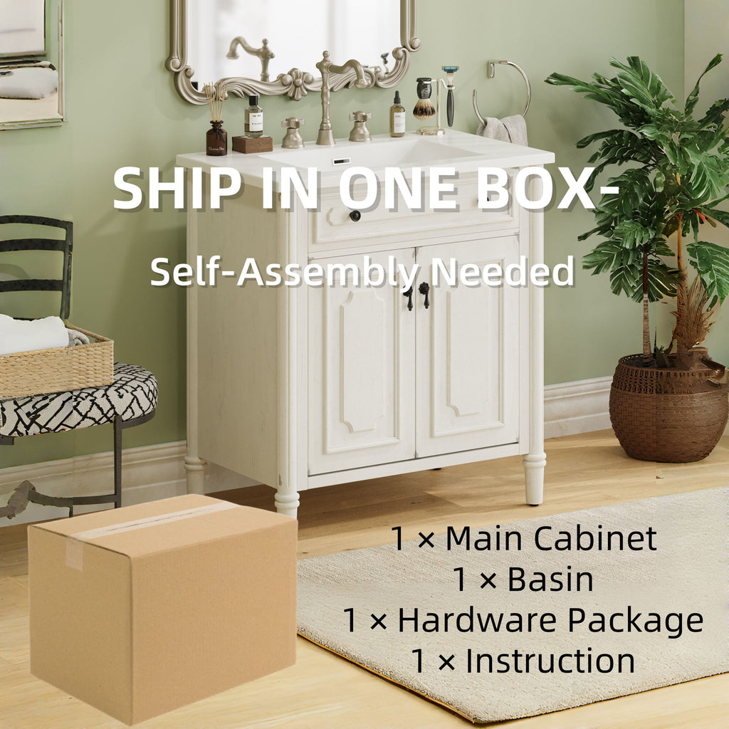 Bathroom Vanity With Sink, Cabinet With Soft Close Doors, Adjustable Shelf, Curved Profile - Ancient White