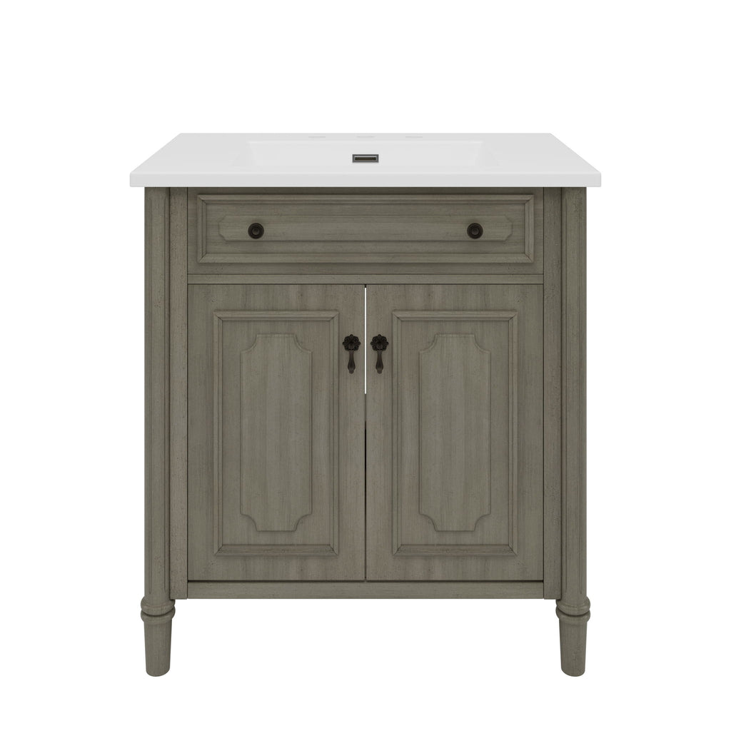Bathroom Vanity With Sink, Cabinet With Soft Close Doors, Adjustable Shelf, Curved Profile - Antique Gray / Gray