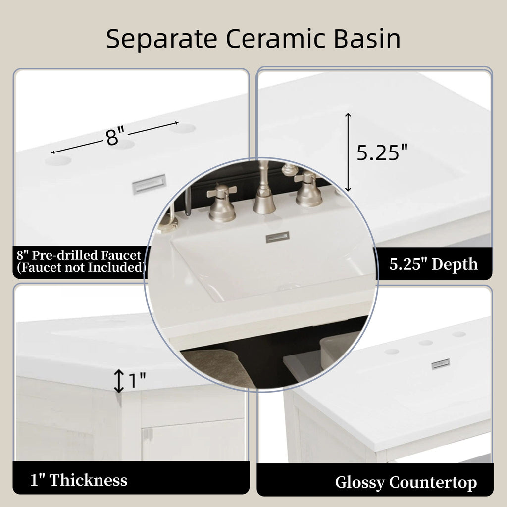 - Ceramic Sink with Deep Basin: Integrated rectangle ceramic sink offers durable, non-porous surface with ample washing space and pre-drilled faucet hole.